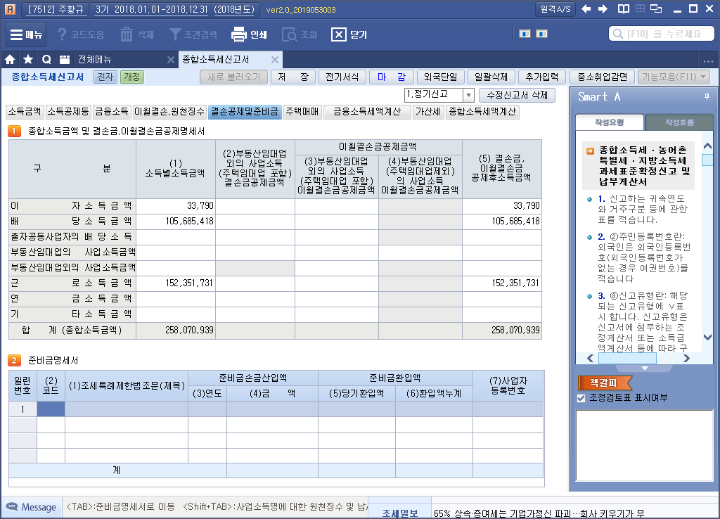 직전 2개 사업연도의 총소득금액의 합계액 | ||