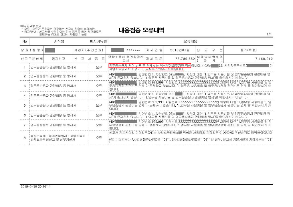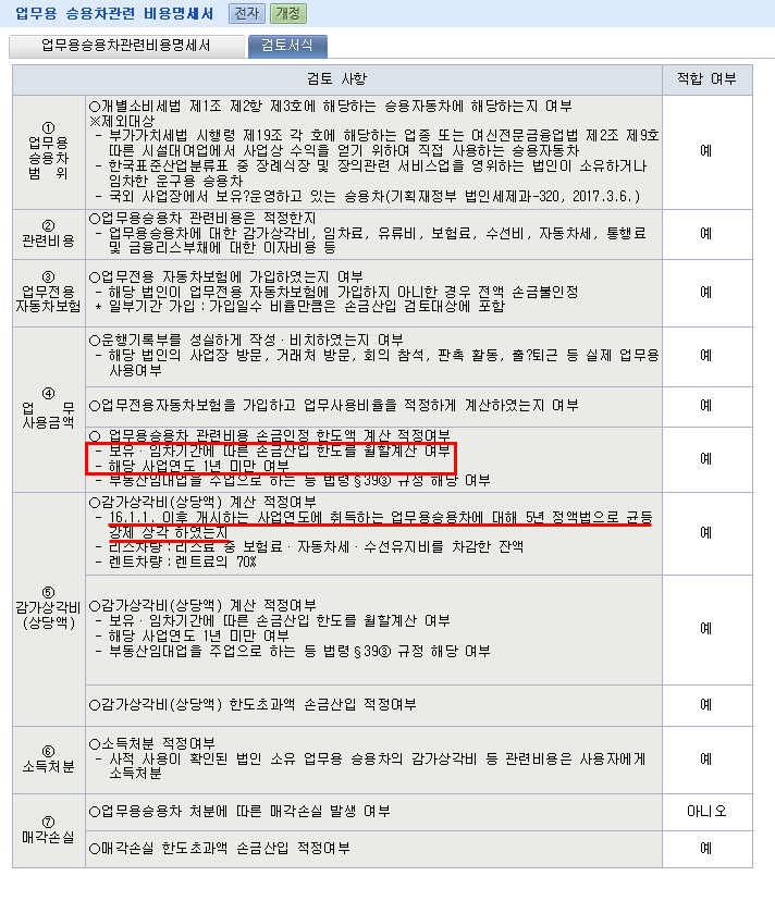 (업무용 승용차관련비용 명세서 첨부및 강제상각)부터