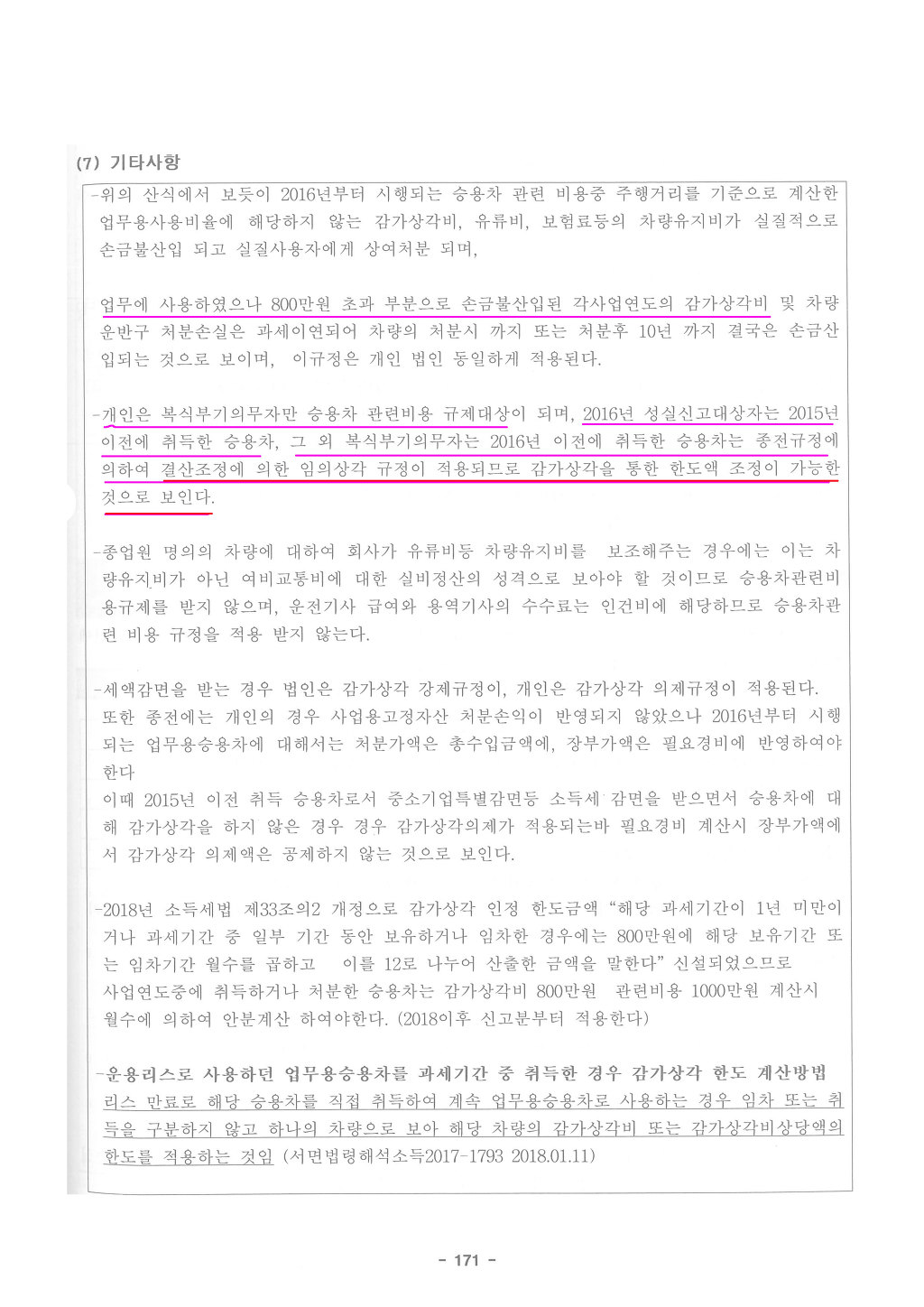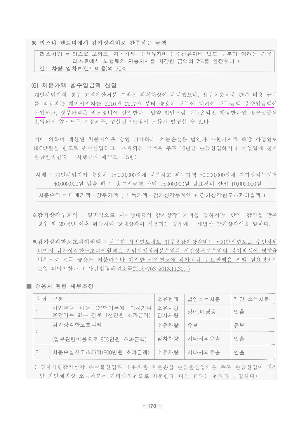 업무용승용차(VAT불공) 상각방법 (정액법 5년) | 2016년 이후 취득한 업무용승용차 분의 경우 정액법 5년 | (직전수입금액)성실신고확인대상사업자 2016.1.1. 이후 취득분 부터 | 복식부기의무자는 2017.1.1.이후 취득분 부터 | 해당사항없음. 정률법 |