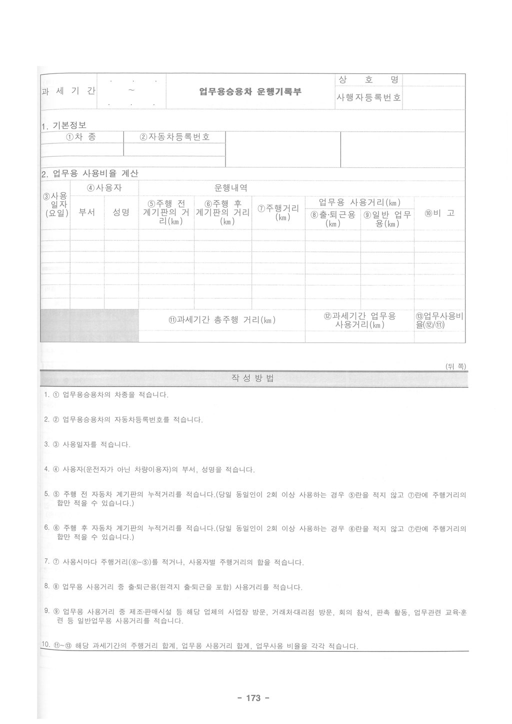 ⑪ 업무용승용차 관련비용 등의 필요경비를 계산할 때 해당 과세기간이 1년 미만이거나 과세기간 중 일부 기간 동안 보유하거나 임차한 경우 월수의 계산은 역에 따라 계산하되, 1월 미만의 일수는 1월로 한다.(2018.02.13 신설)