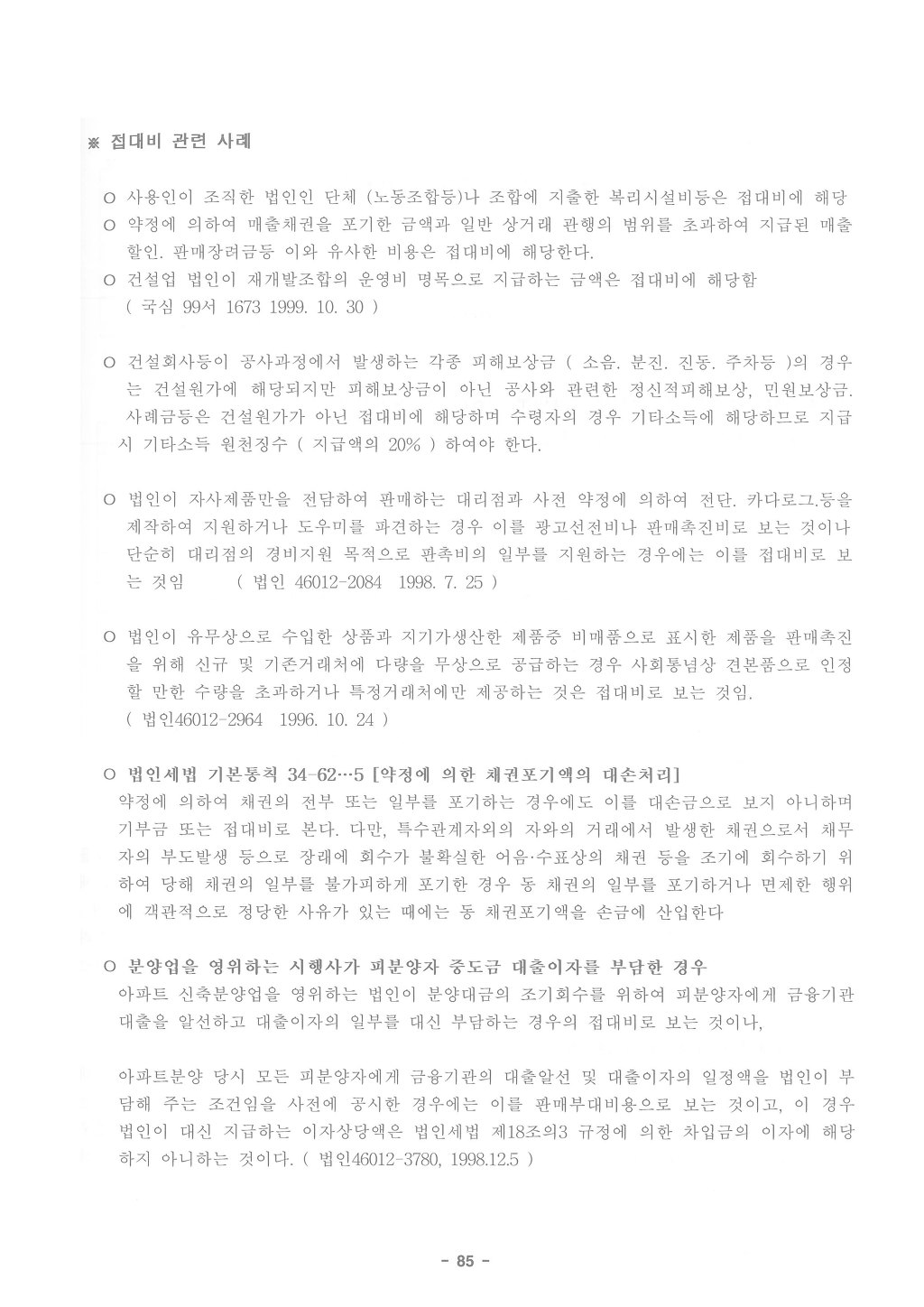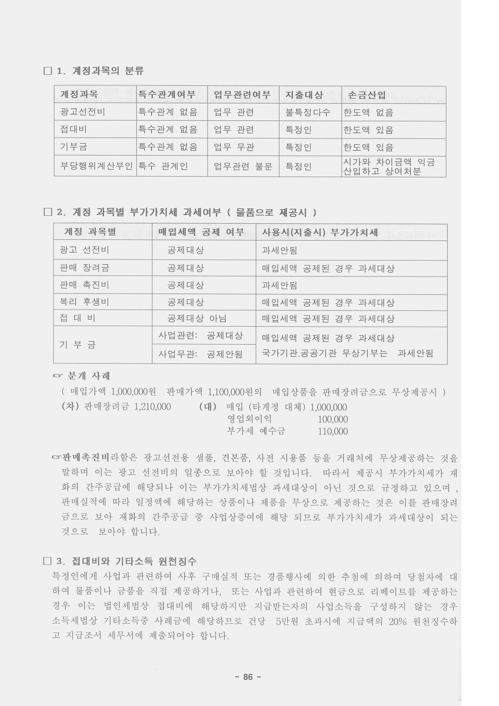 따라서 업무와 관련있지만 불특정다수인에게 제공하는 광고선전비와 특정인에게 제공하지만 업무와 관련이 없는 기부금과는 구분이 된다.