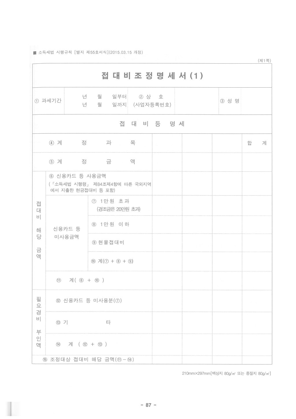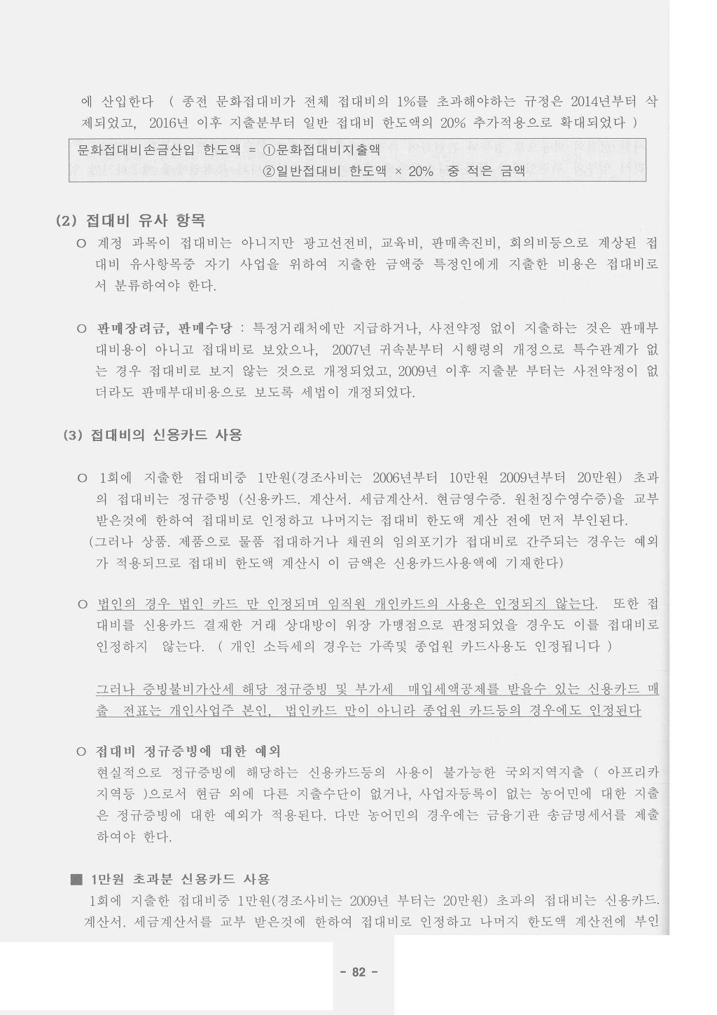 1. 다음 각 목의 어느 하나에 해당하는 것(이하 이 조에서 “신용카드등”이라 한다)을 사용하여 지출하는 접대비(2009.12.31 개정)