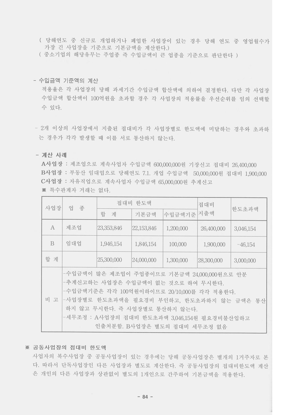 ※ 공동사업장의 접대비 한도액