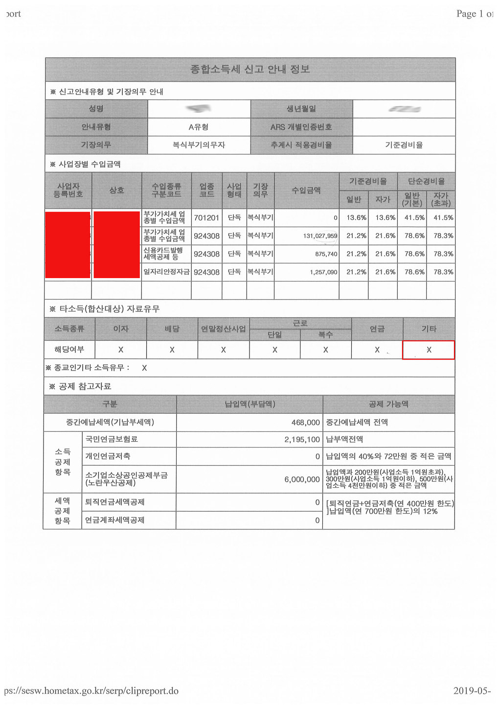 종합소득세 신고시 합산시고를 해야 되는지요?
