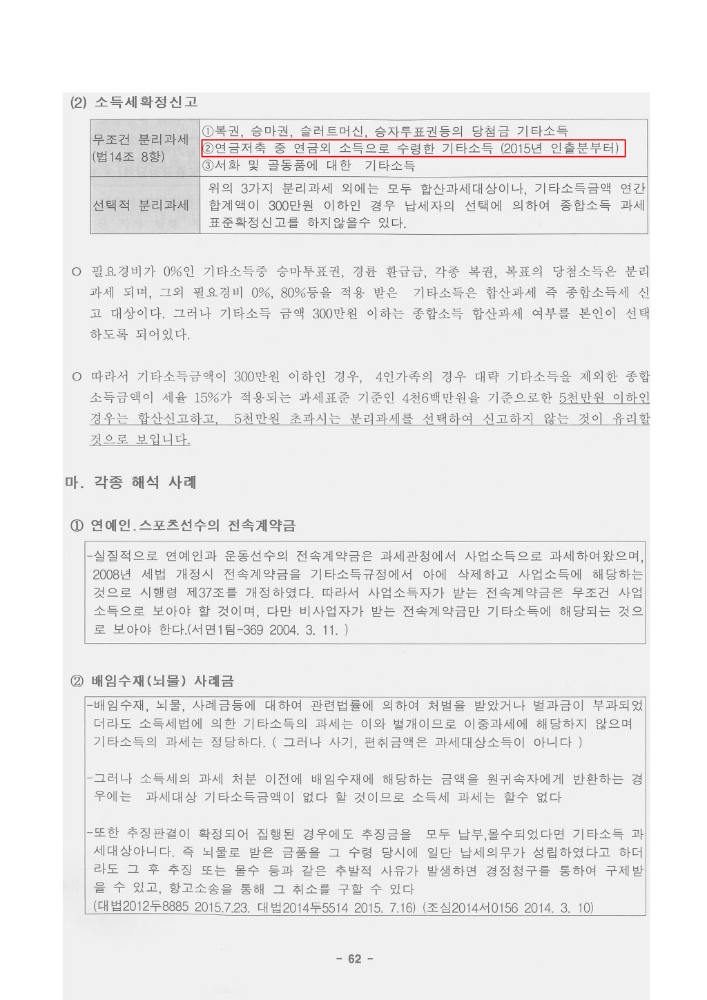 연금저축 중도해지로 인한 기타소득으로서 2015년 1.1.이후 발생분은 무조건 분리과세 대상에 해당하므로 종합소득세 합산신고 대상에 해당하지 아니하며 ,