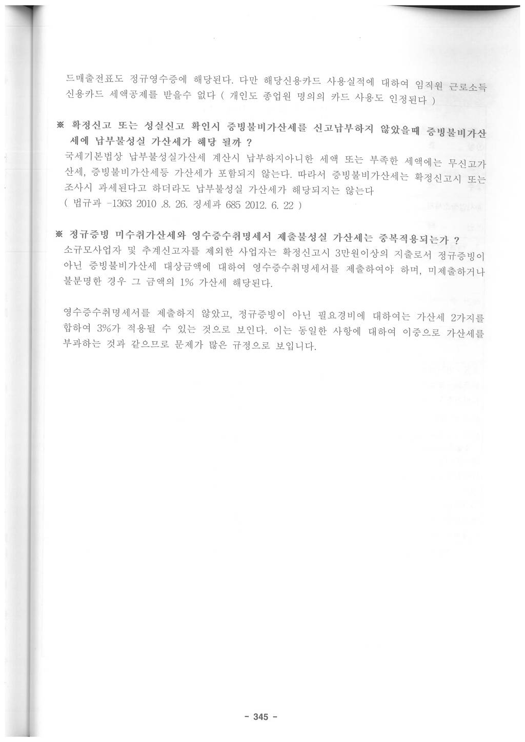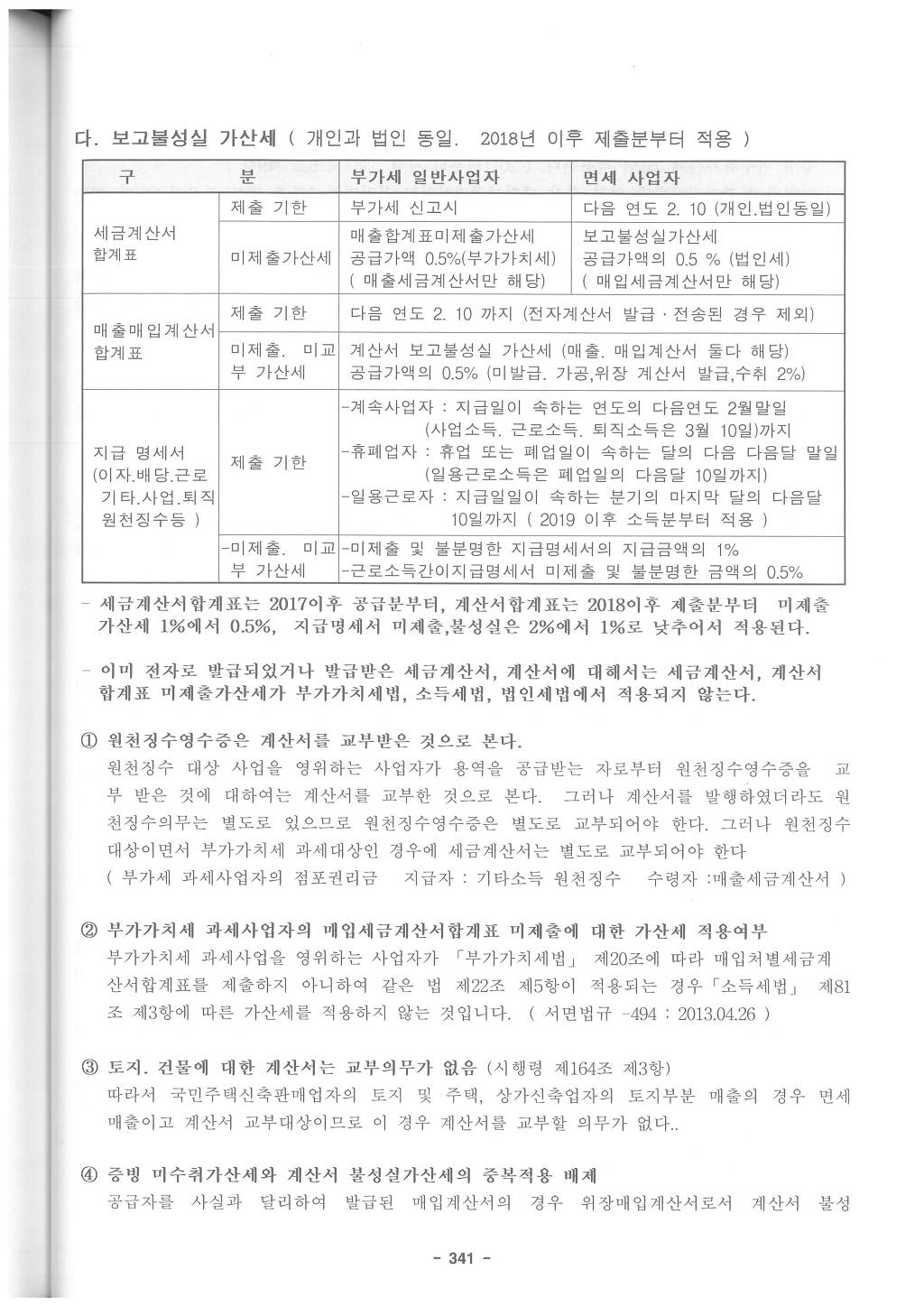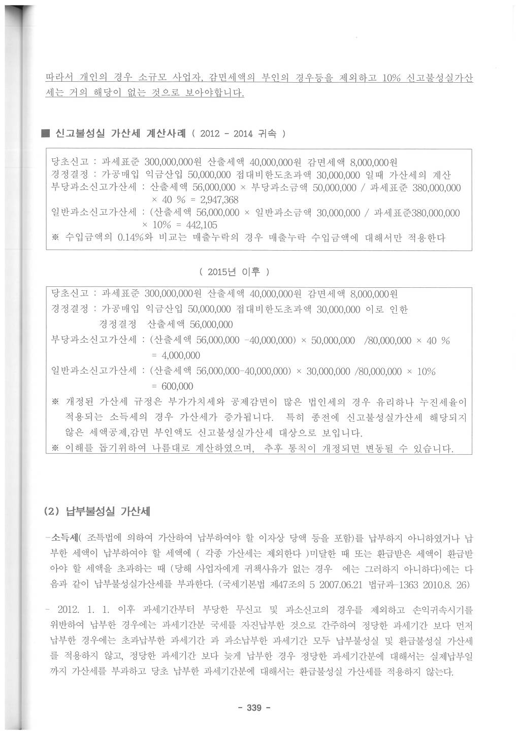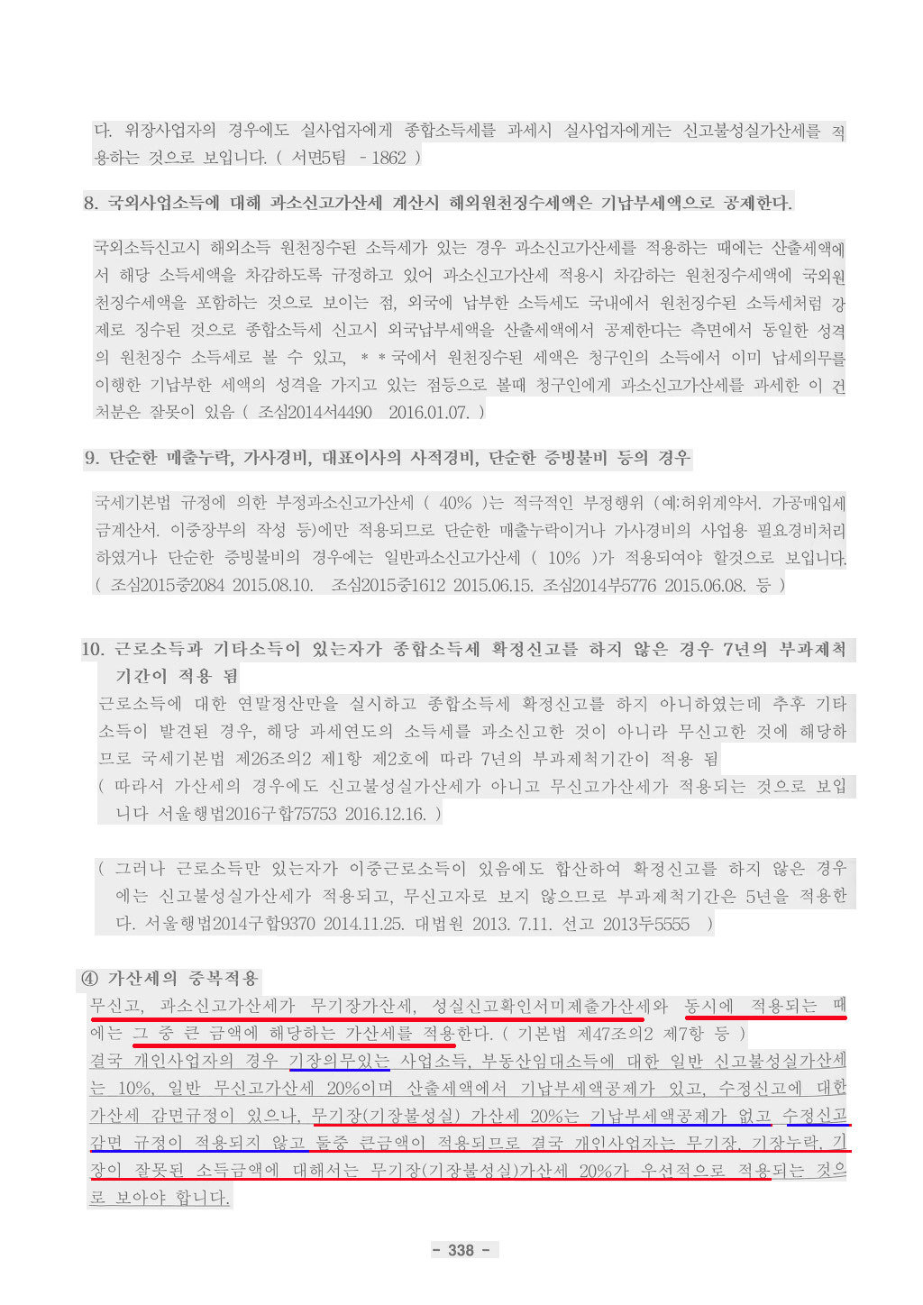 따라서 개인의 경우 소규모 사업자, 감면세액의 부인의 경우등을 제외하고 10% 신고불성실가산세는 거의 해당이 없는 것으로 보아야 합니다.