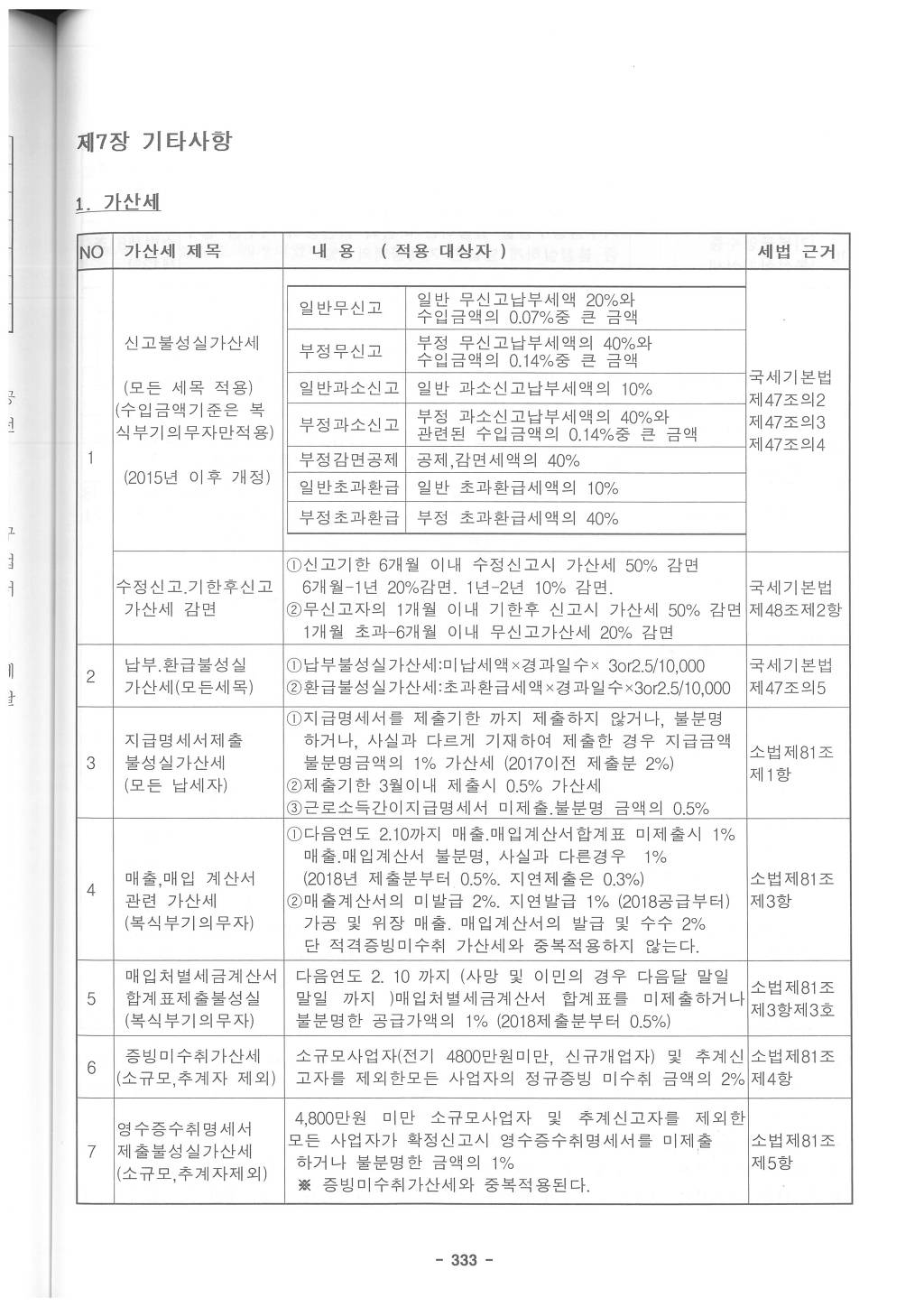 ⑦ 수입금액의 범위, 가산세액의 계산과 그 밖에 가산세 부과에 필요한 사항은 대통령령으로 정한다.(2014.12.23 항번개정)