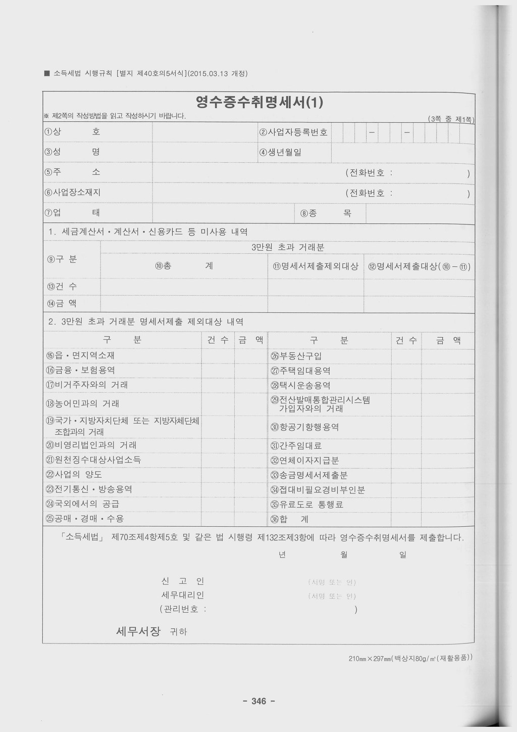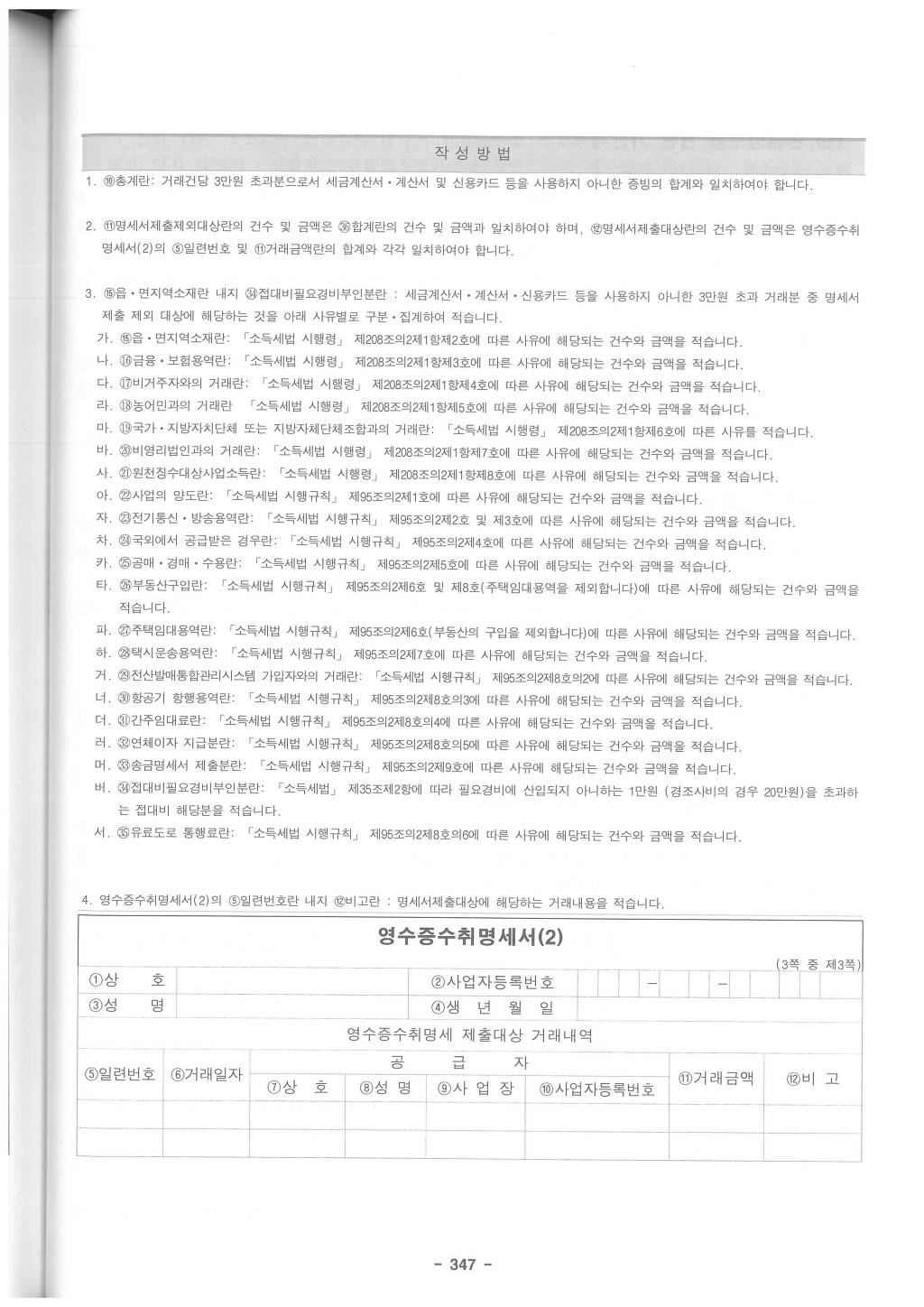 소득세법시행령 제132조 [ 영수증수취명세서 등(2012.02.02 제목개정) ]