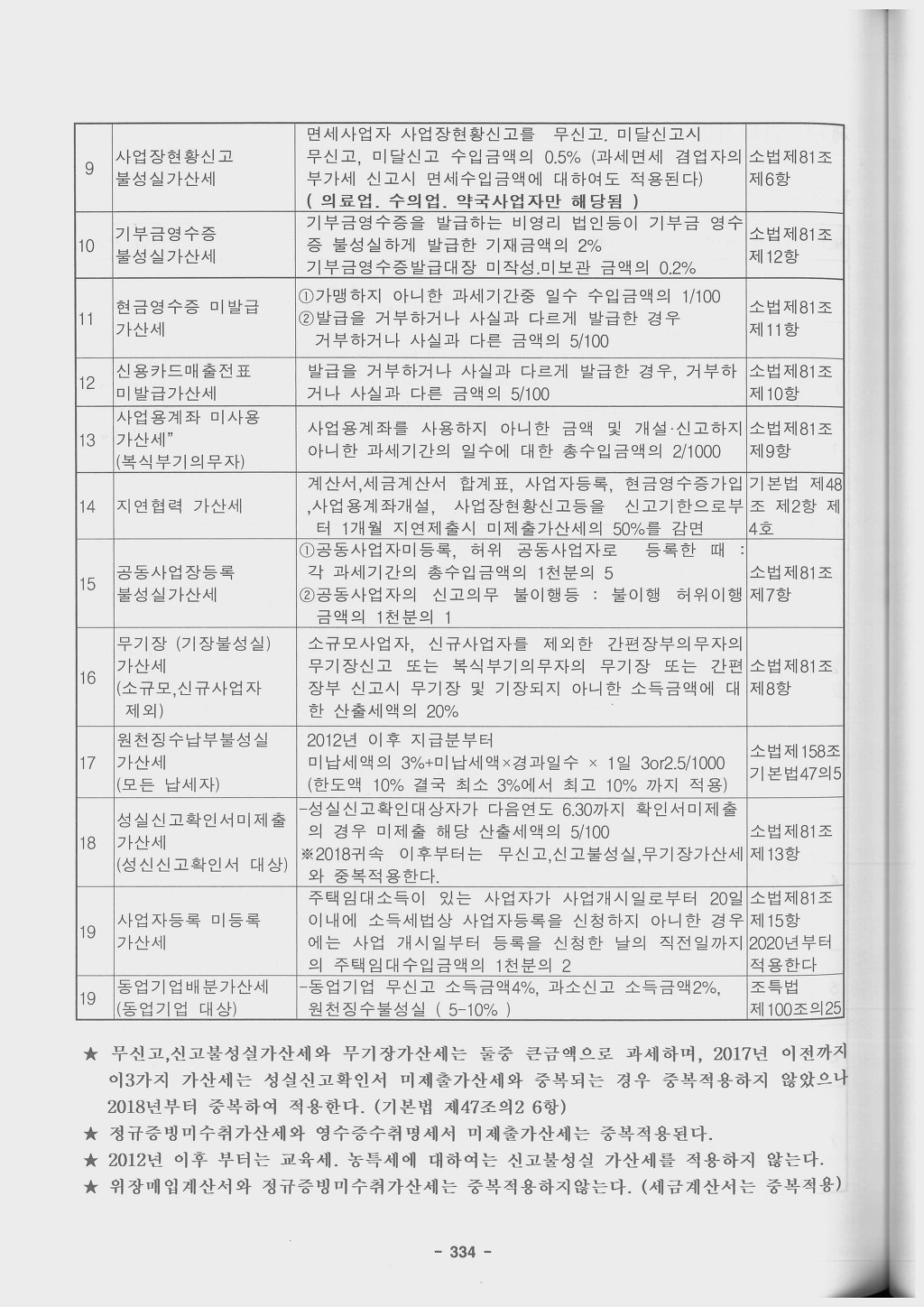 2018년귀속분부터 성실신고 가산세 산출세액의 25% 무기장가산세 20% 와 성실신고미첨부가산세 5% 2018년도 분부터 중복적용이 됨 |