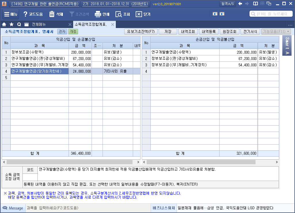 1. 연구개발출연금등을 해당 연구개발비로 지출하는 경우 : 해당 지출액에 상당하는 금액을 해당 지출일이 속하는 과세연도의 소득금액계산을 계산할 때 익금에 산입하는 방법(2010.01.01 개정)