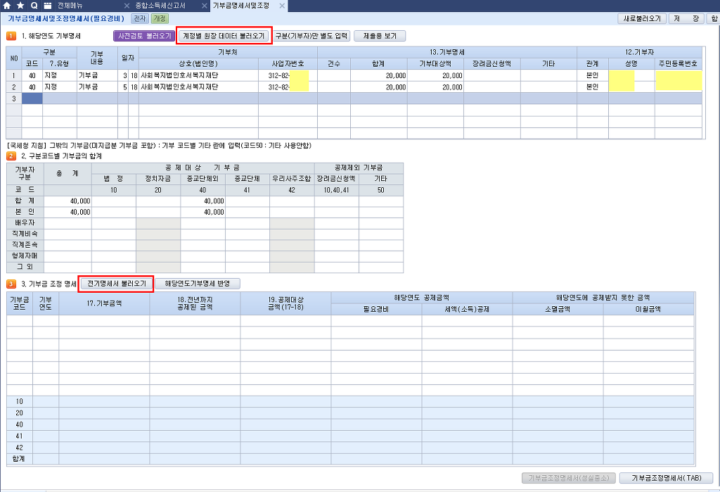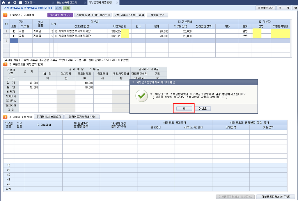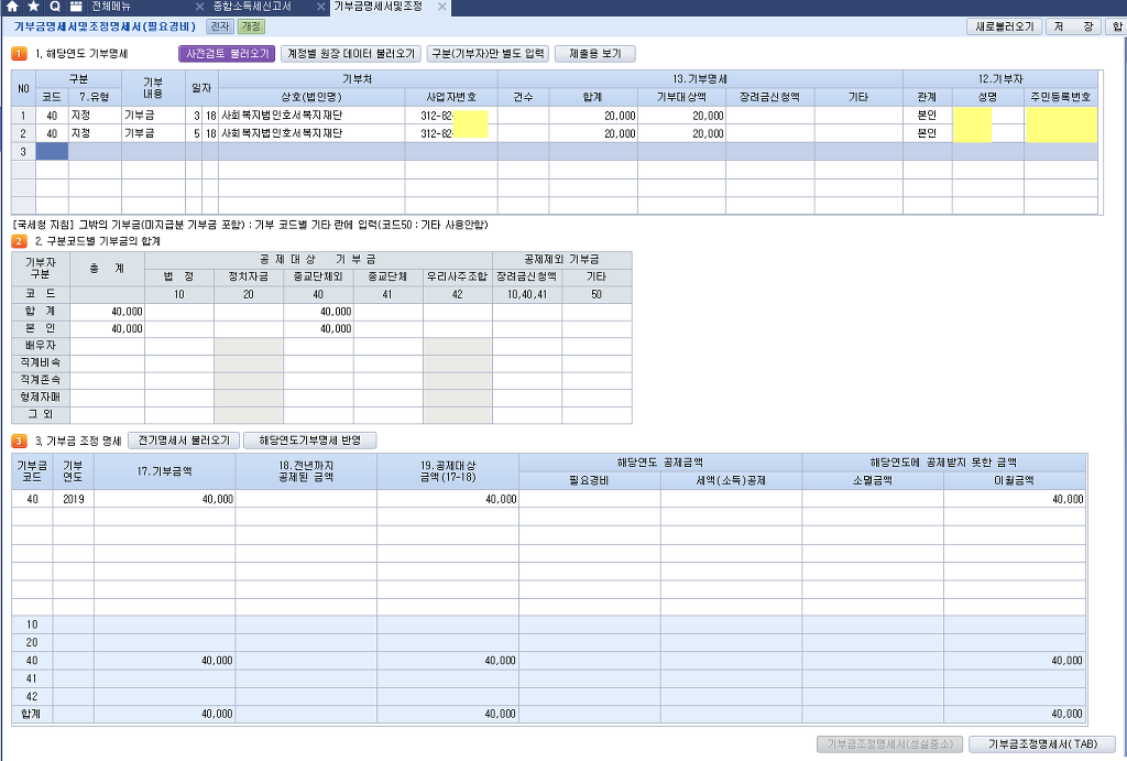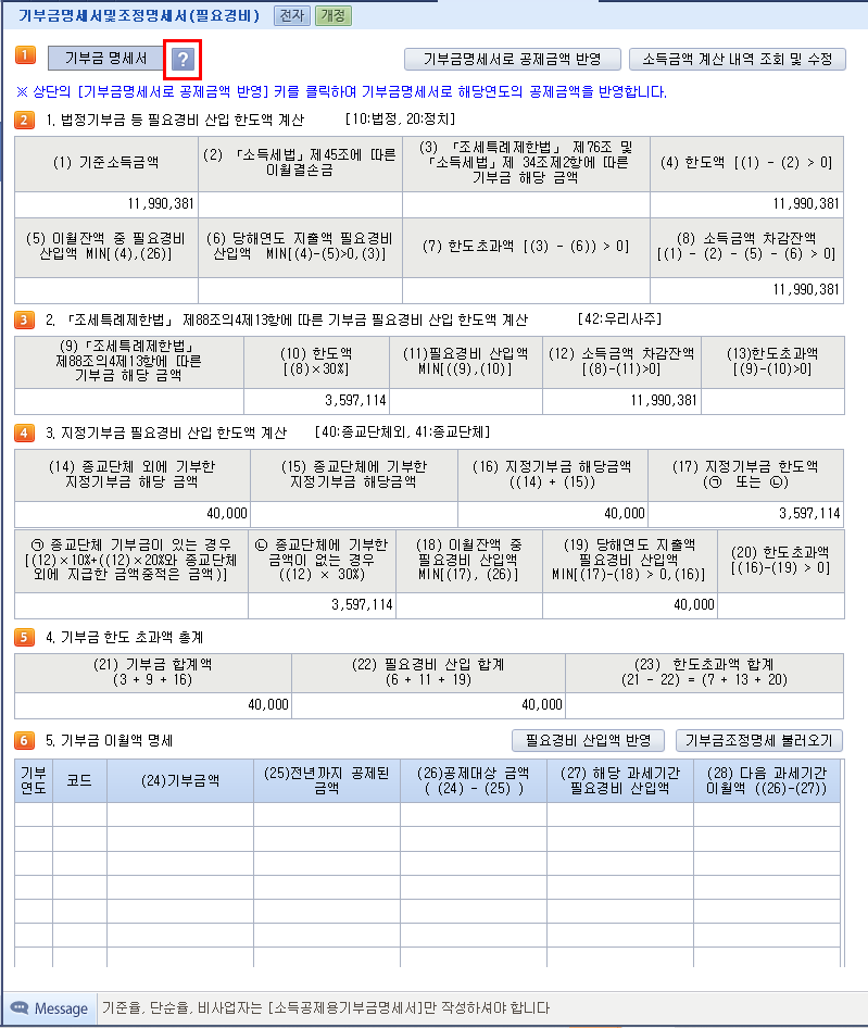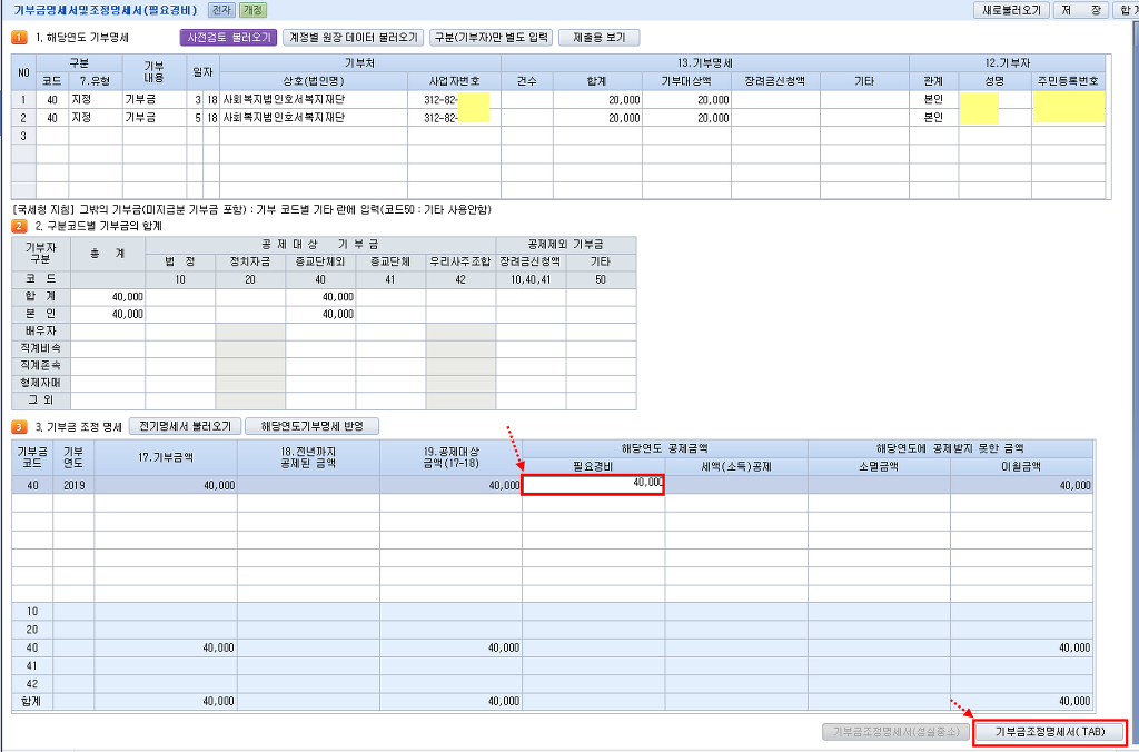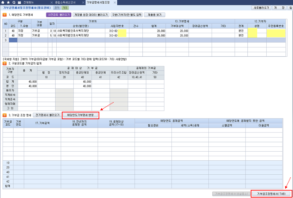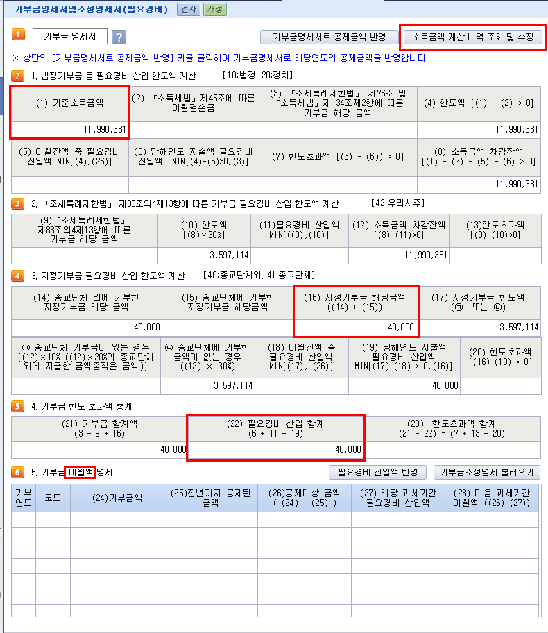 기부금이 3,000,000(교회헌금) 입니다