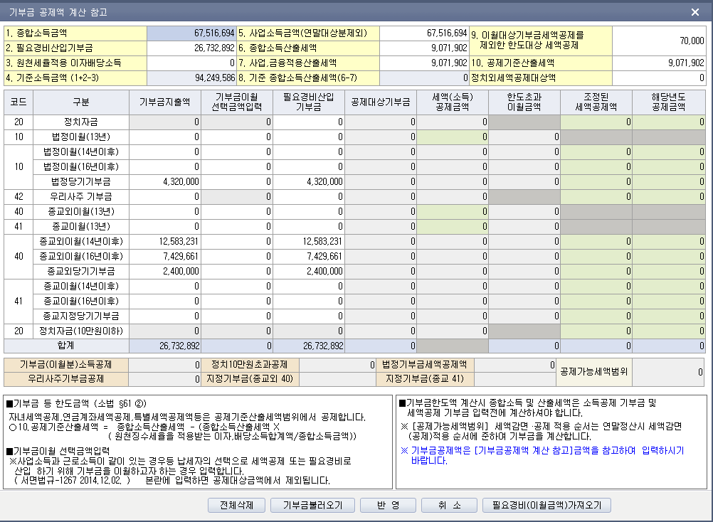 감면업만을 영위하고 있을시에 기부금 3,000,000원 전액을 공제해도 되는것인지?