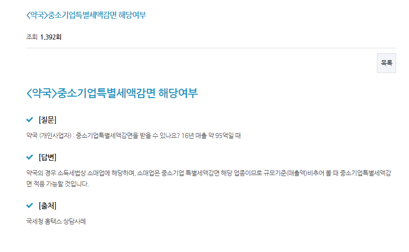 1. 약국의 경우 소득세법상 소매업에 해당하며, 소매업은 중소기업 특별세액감면 해당 업종이므로 규모기준(매출액)비추어 볼 때 중소기업특별세액감면 적용 가능할 것입니다.