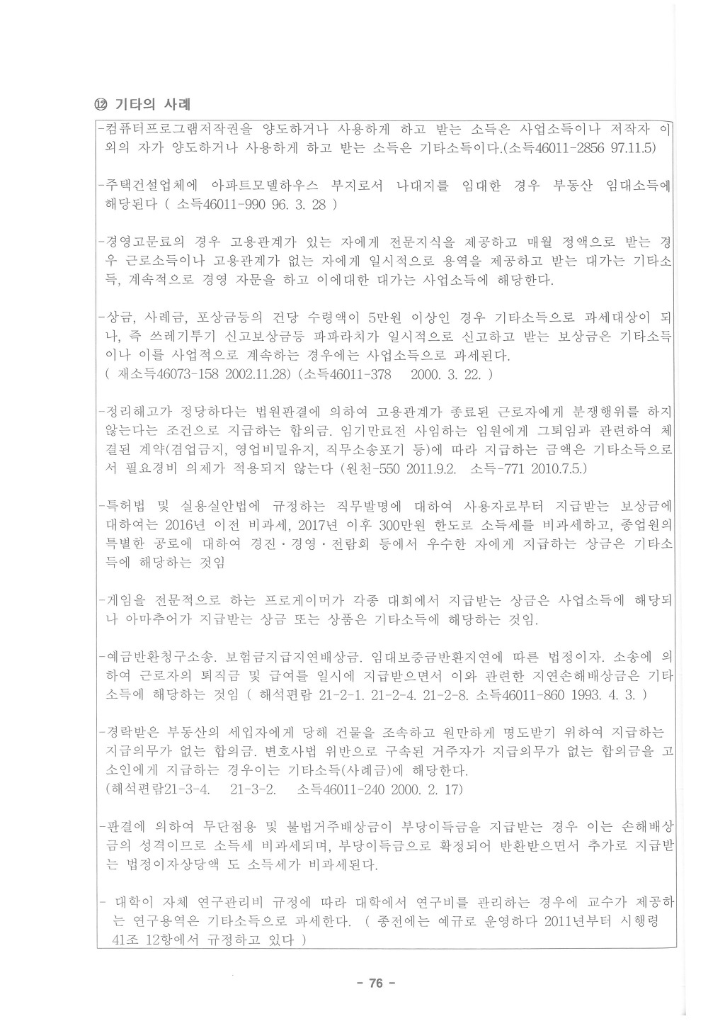 2. 그러나 기타소득에 대한 원천징수의무는 사업자가 아닌 일반 개인인 경우에도 가능한 것이므로, 영업권 양도에 대하여는 원천징수대상 소득에 해당되는 것이므로, 영업권 양도분에 대하여는 기타소득으로 원천징수의무를 이행하여야 하는 것이나,