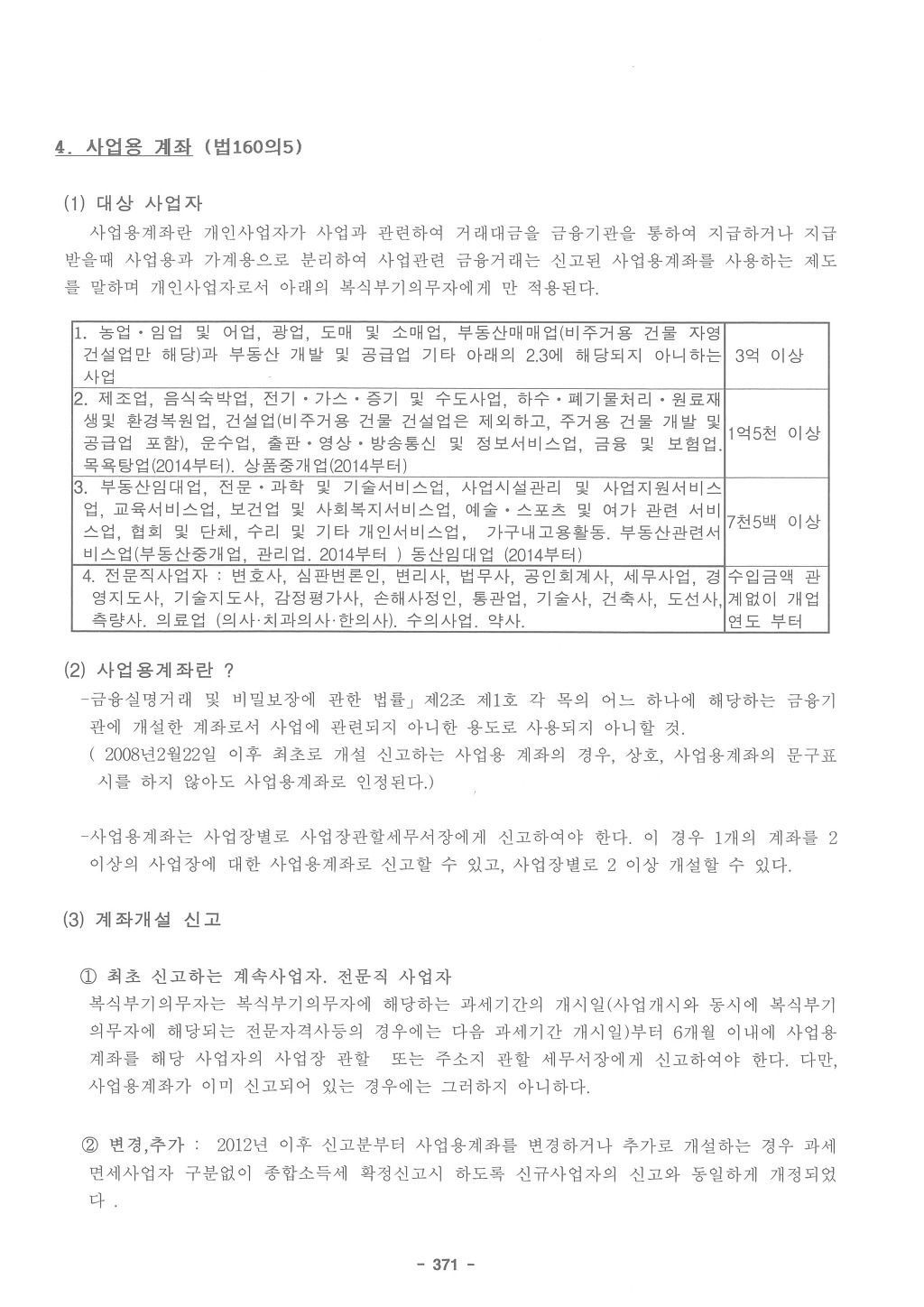 특히 2019년 귀속 개인사업자의 총수입금액(매출액)이 확정되면 2020년도의 사업소득의 기장유형(간편장부대상자 또는 복식부기의무자)이 결정되고 이에 부수적으로 사업용계좌 신고의무 및 사용의무가 결정됩니다.