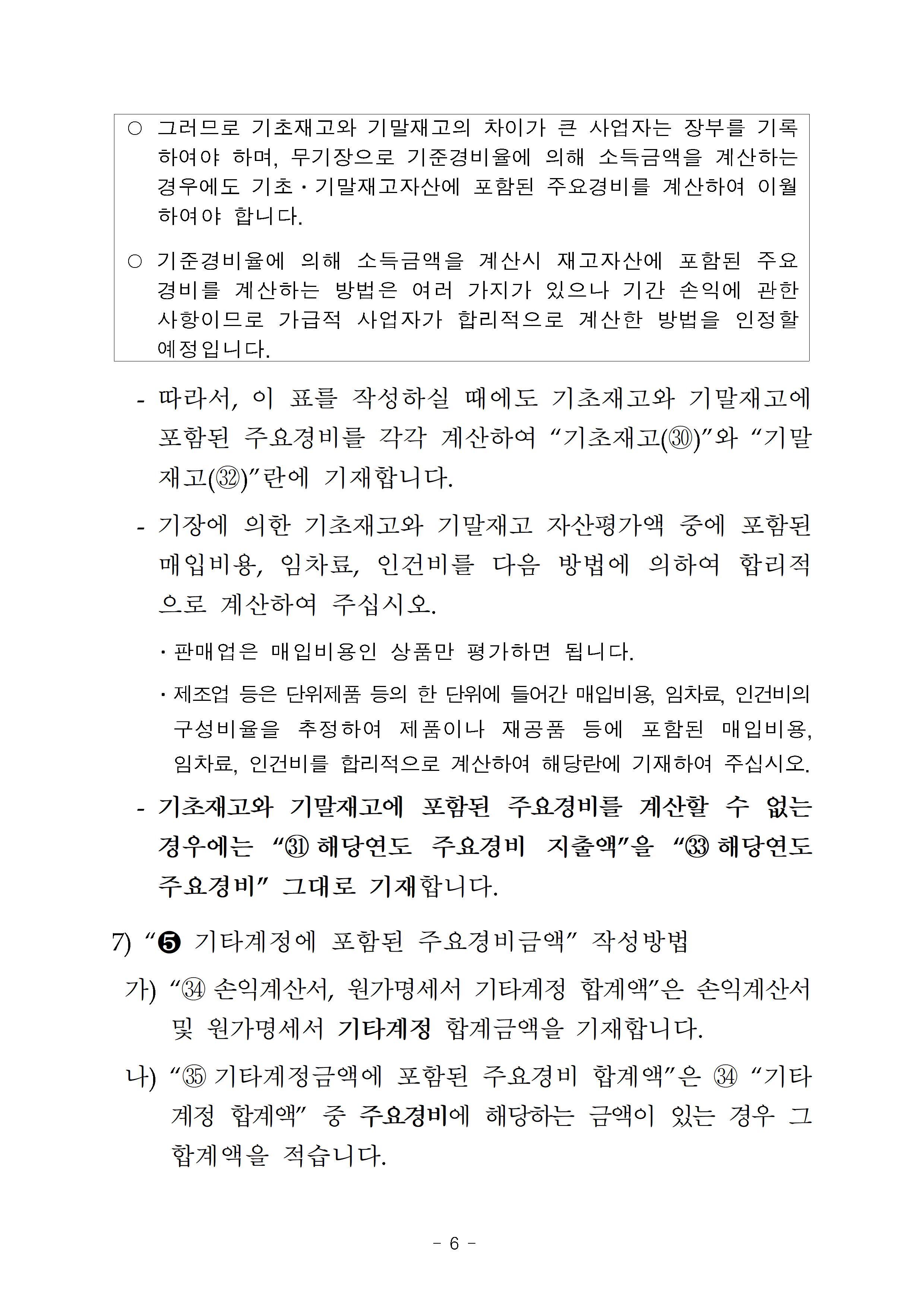 ○ 「기준경비율 적용 검토표」는 기준경비율 결정에 중요한 자료이므로 정확하게 작성하여 주시기를 다시 한 번 부탁드립니다.
