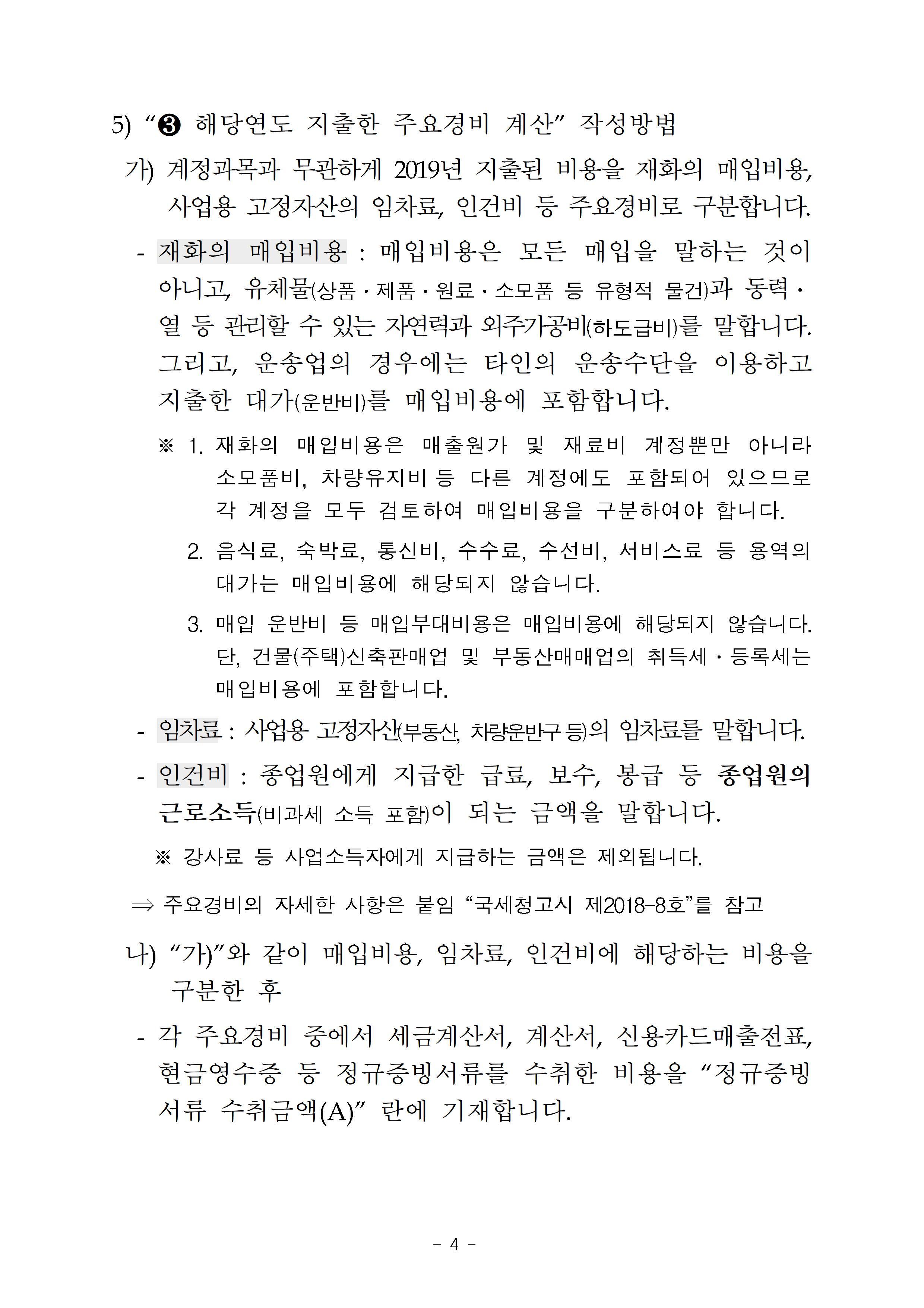 -소득금액 계산결과 나타나는 차이점등을 분석하여 2020년귀속 기준경비율 결정에 반영하고자 합니다.