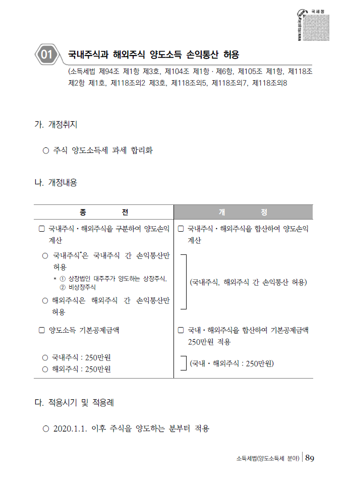 국내주식과 해외주식 양도소득 손익통산 허용 2020.1.1. 이후 주식을 양도하는 분부터 적용 작성자social distancing|작성시간20.04.10|조회수87 목록 댓글 0 글자크기 작게가 글자크기 크게가 다음검색 현재 게시글 추가 기능 열기 북마크 공유하기 신고 센터로 신고 댓글 댓글 0 댓글쓰기 답글쓰기 댓글 리스트