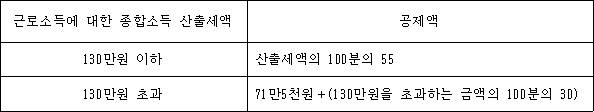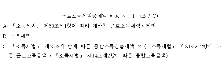 ①근로소득이 있는 거주자에 대해서는 그 근로소득에 대한 종합소득산출세액에서 다음의 금액을 공제한다. <개정 2014.1.1, 2015.5.13>