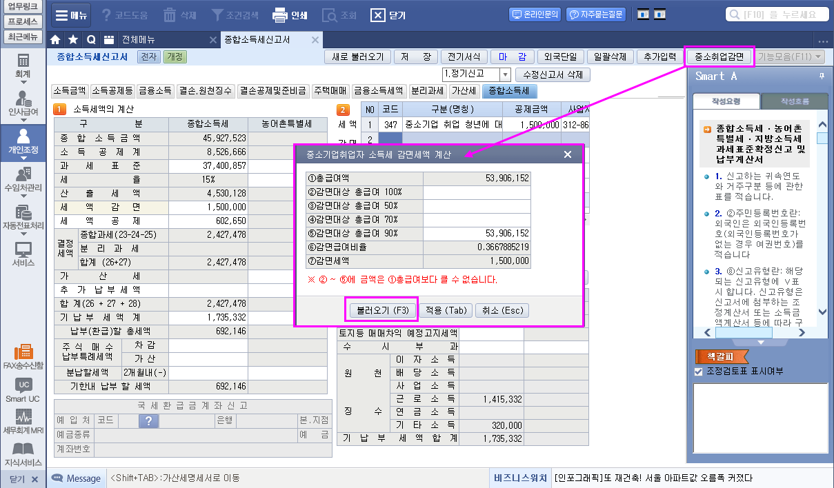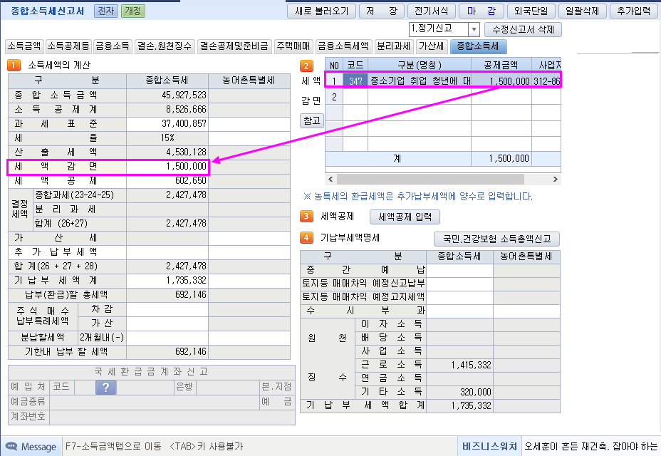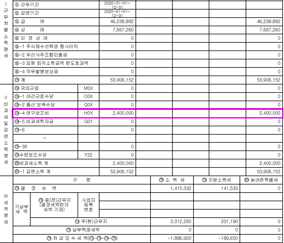 하단 1,930,063원 -> 150만원한도 초과 근무지 내용파악