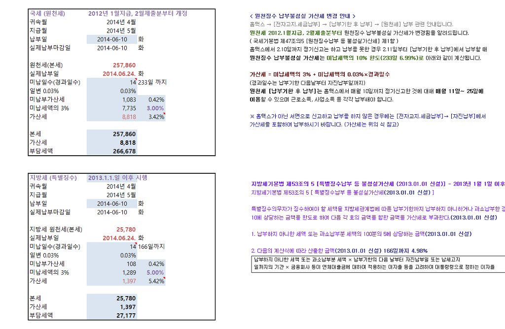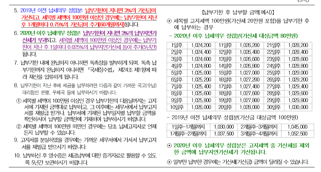 가산세를 포함하여 납부하시기 바랍니다. (가산세는 위의 식 참고)