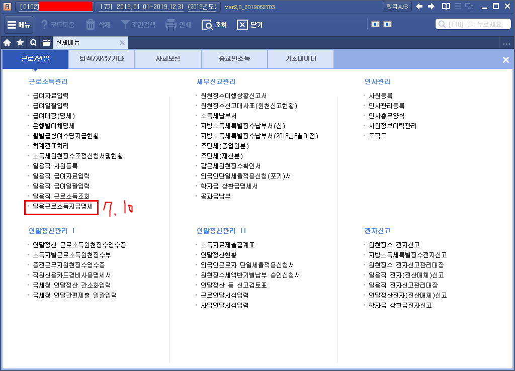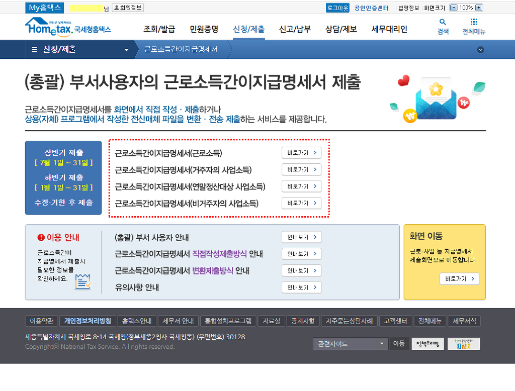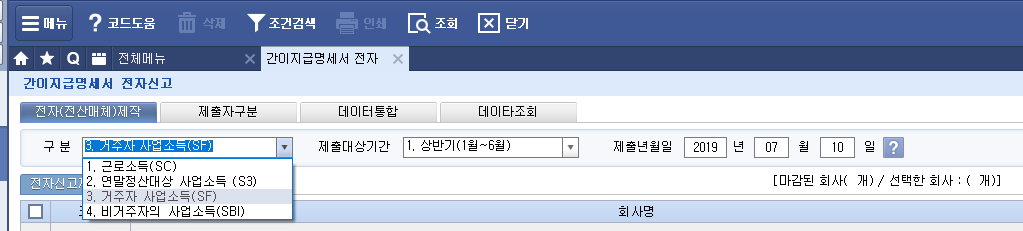 · 상용 근로소득간이지급명세서: |