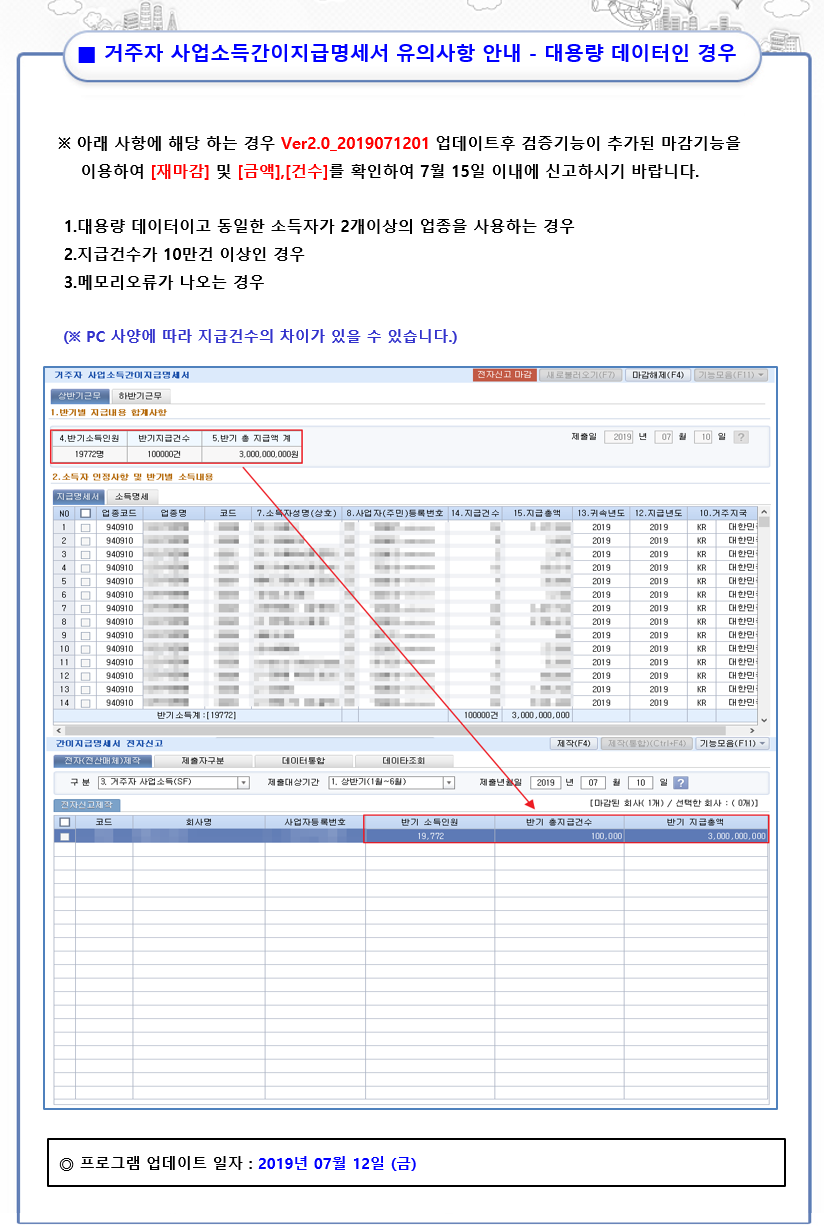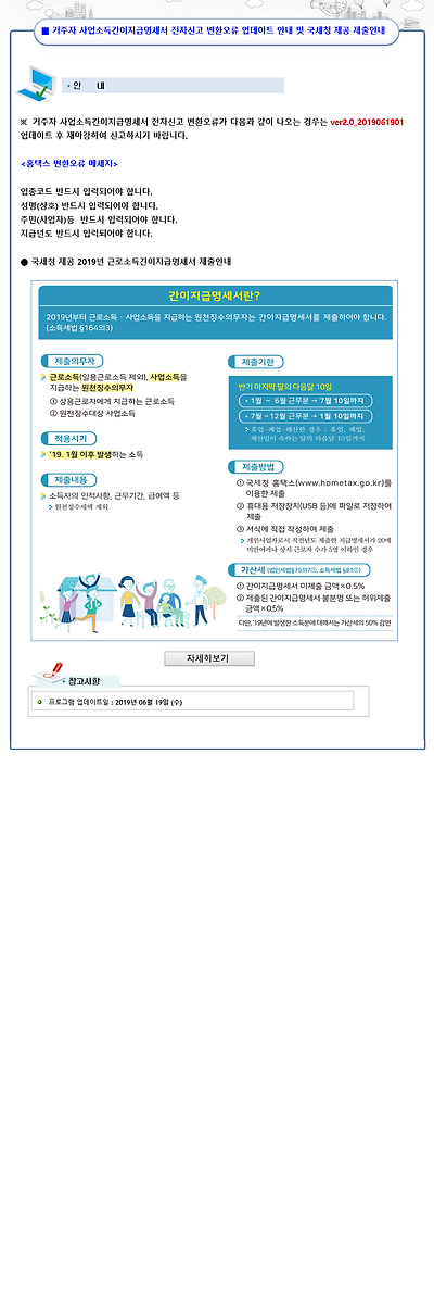간이지급명세서란 ? 2019년부터 근로소득 · 사업소득을 지급하는 원천징수의무자는 간이지급명세서를 제출. 상반기7월10일까지 하반기다음해1.10