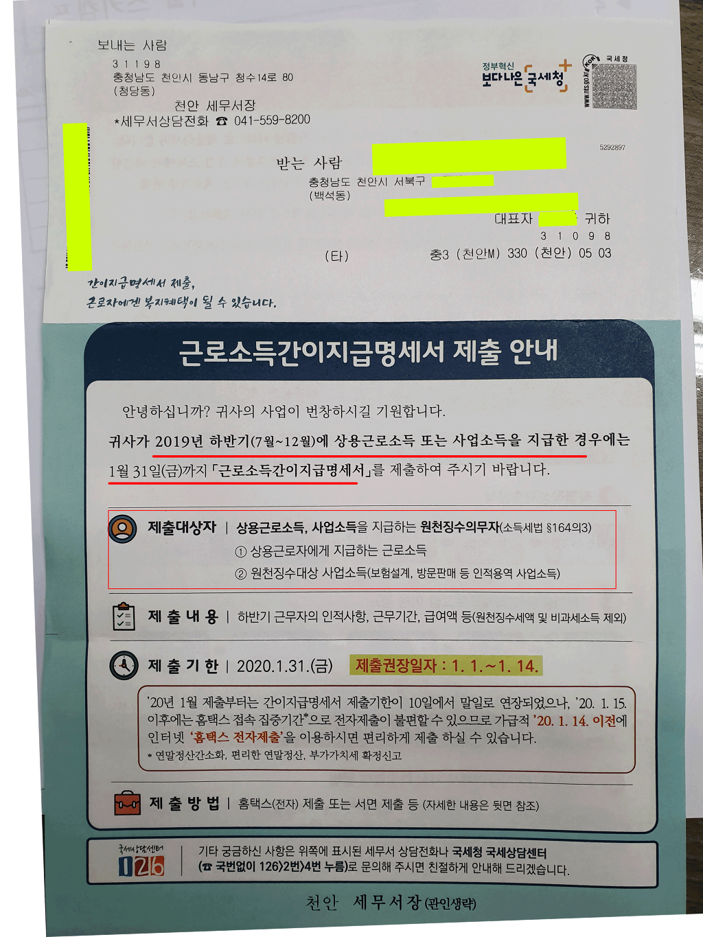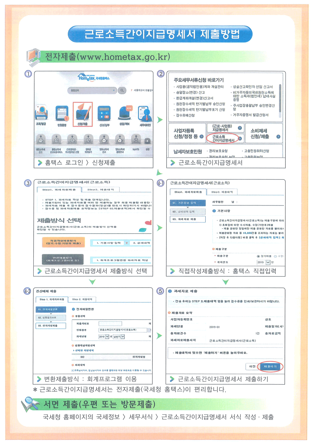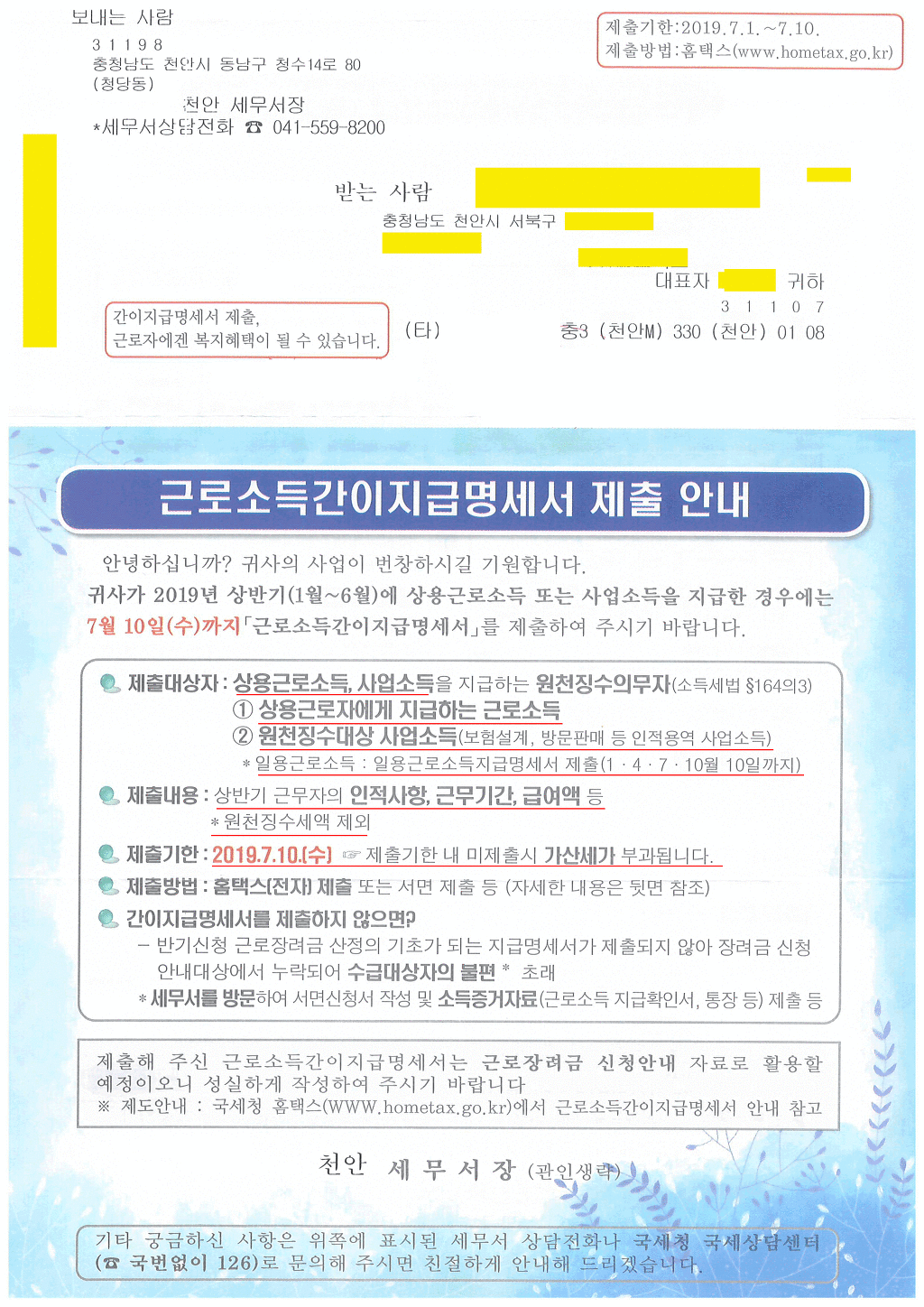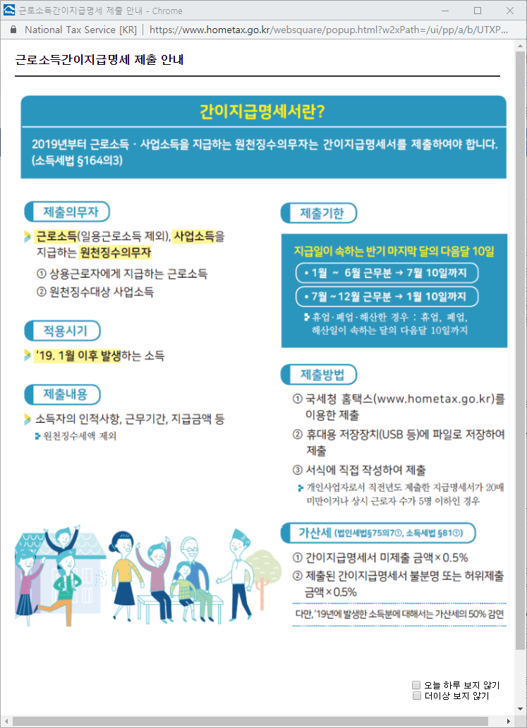 · 상용 근로소득지급명세서: 휴업·폐업·해산한 달의 다음다음 달 말일