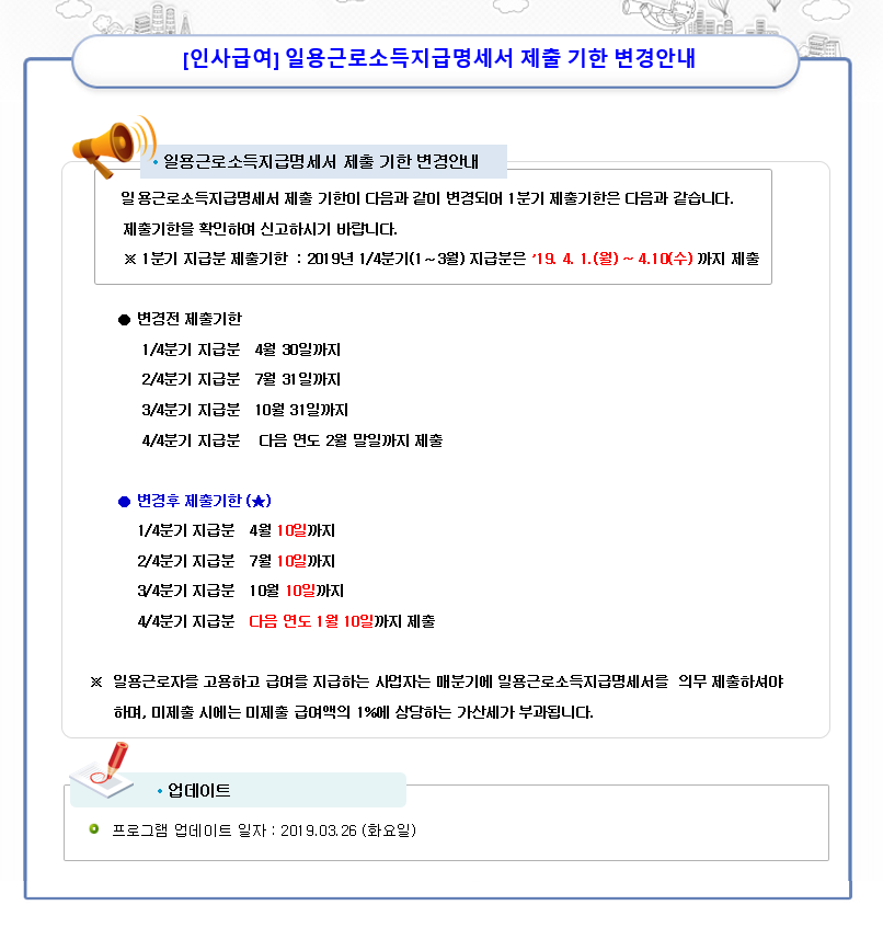 □ 일용 근로소득지급명세서 제출기한