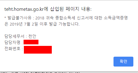 - 2018년귀속 종합소득세신고자용 소득금액증명은 2019.7.2부터 발급가능합니다.