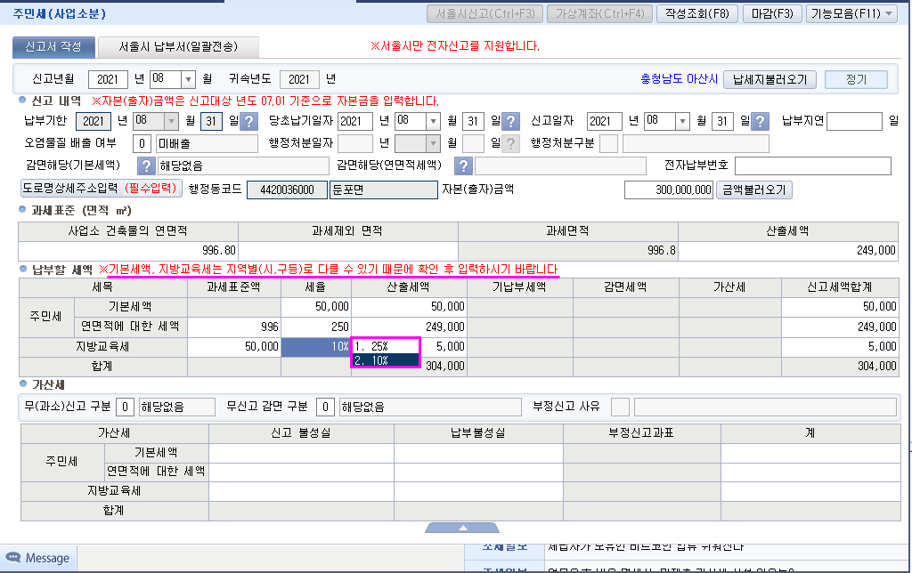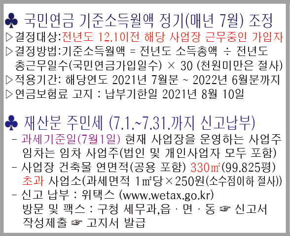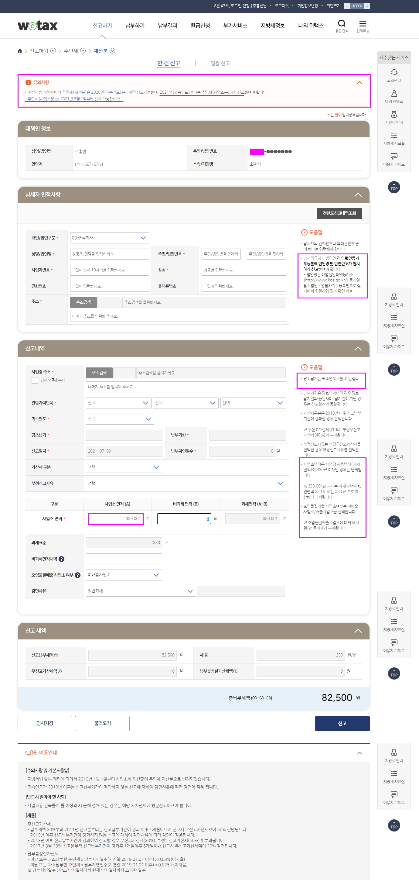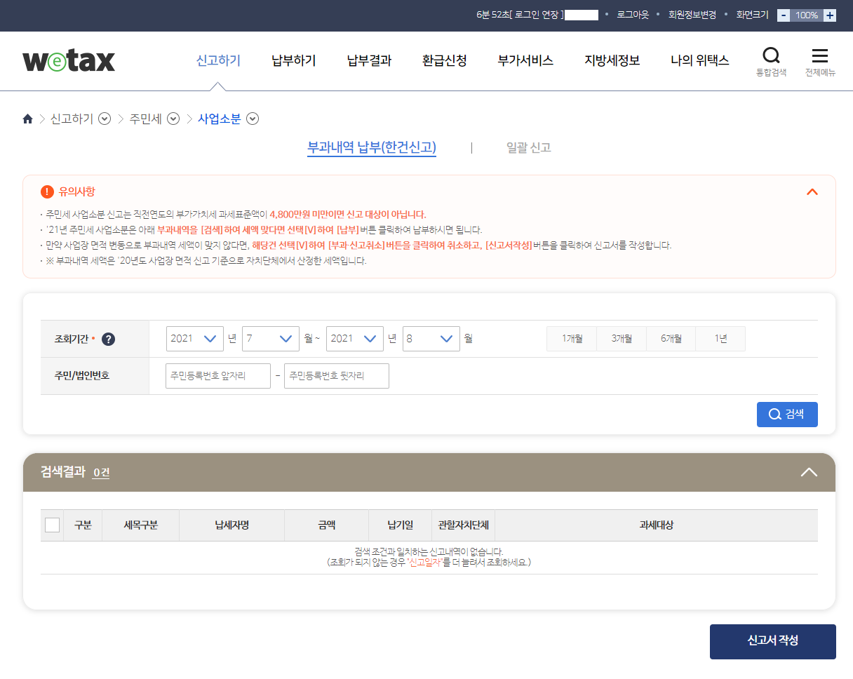 단, 이전 신고분 자료로 고지하므로 변동된 사항 등이 있으면 자진 신고 납부