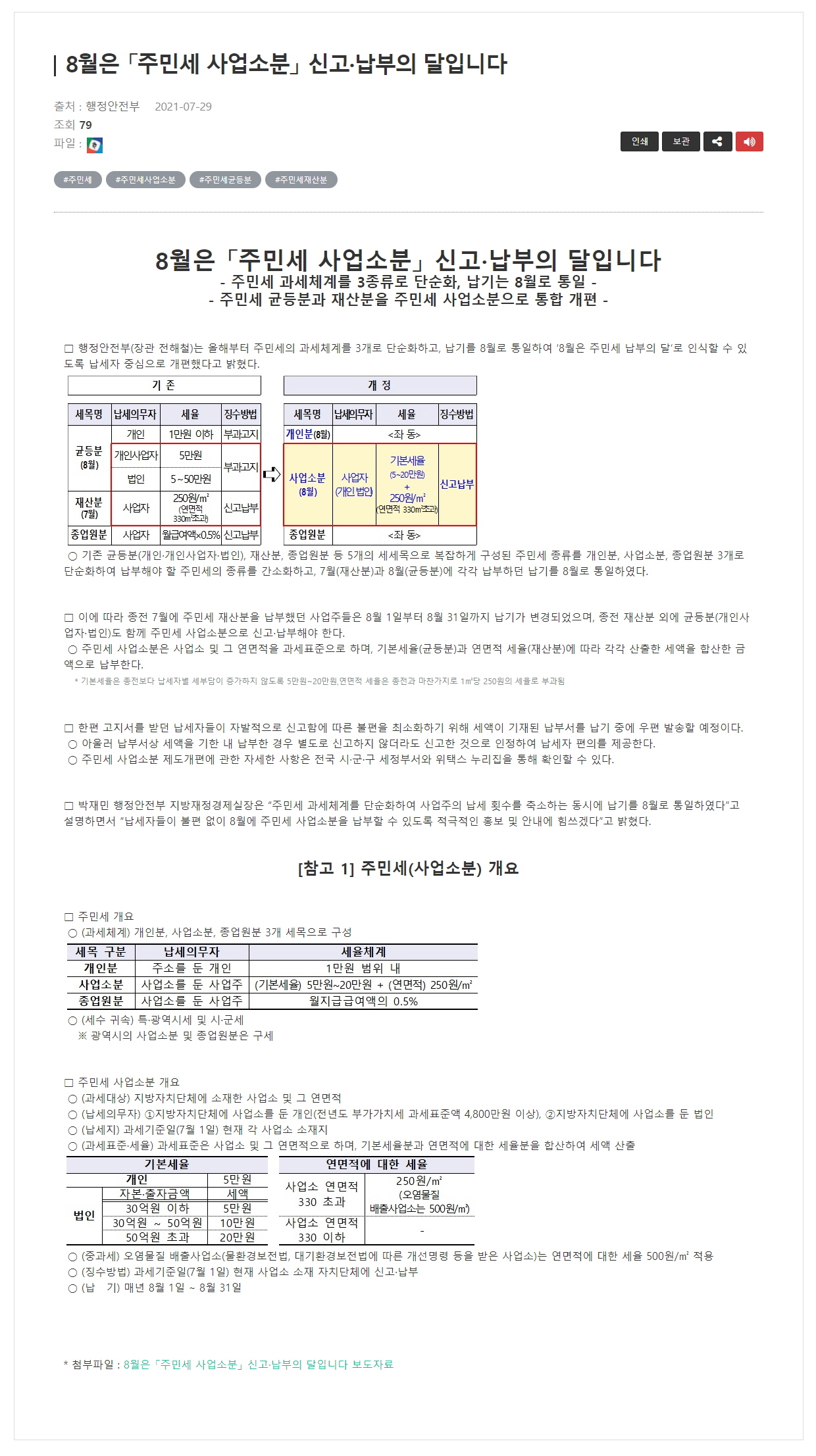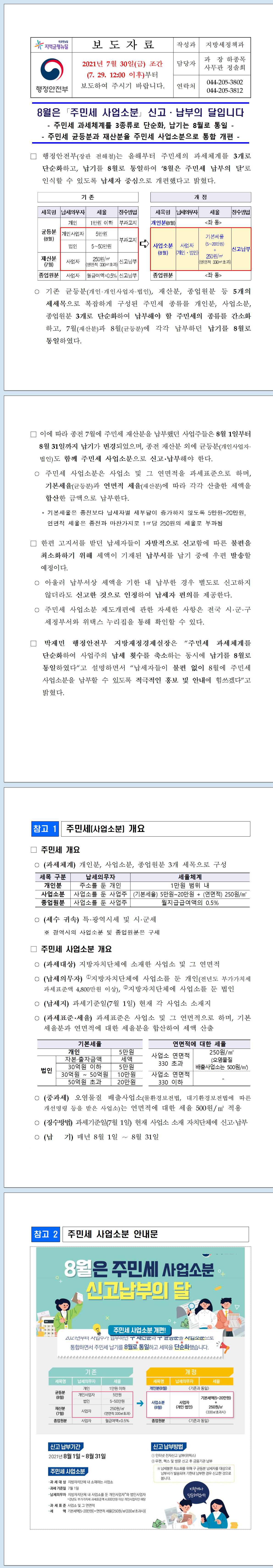 * 첨부파일 : 8월은 「주민세 사업소분」 신고·납부의 달입니다 보도자료