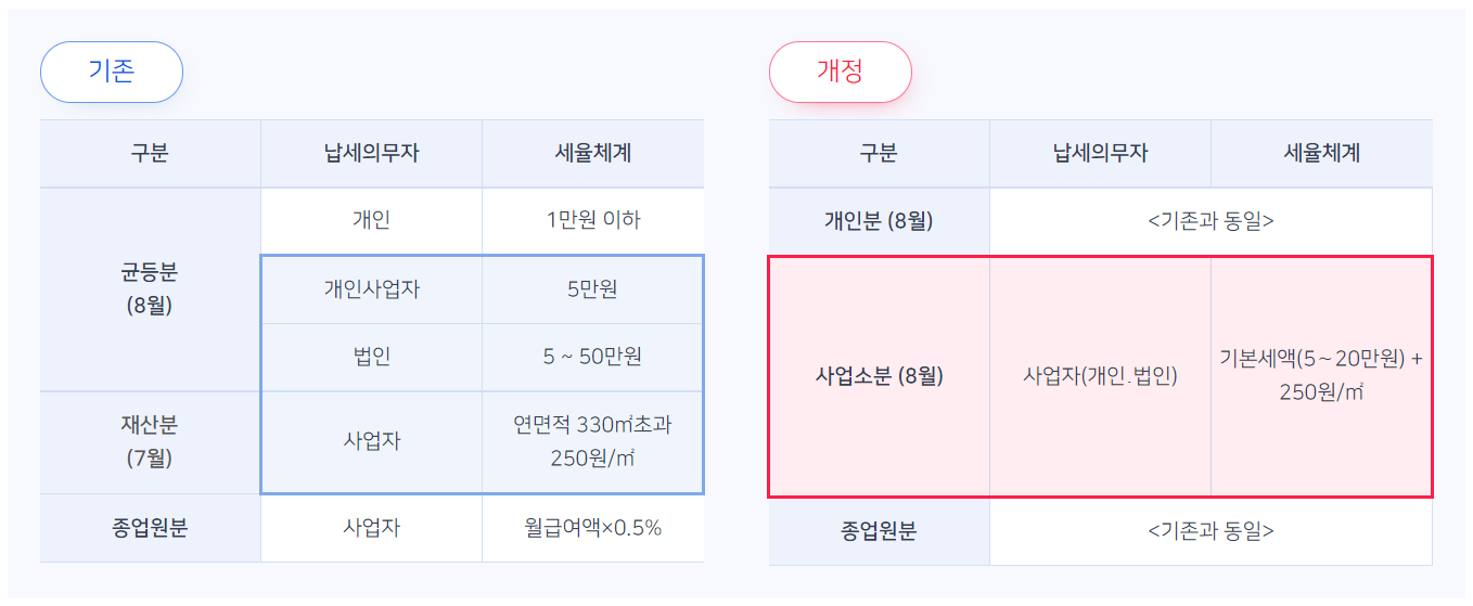 7월에 신고납부하는 주민세 재산분과 8월에 부과되는 주민세 개인사업자·법인균등분이 주민세 사업소분으로 통합되고
