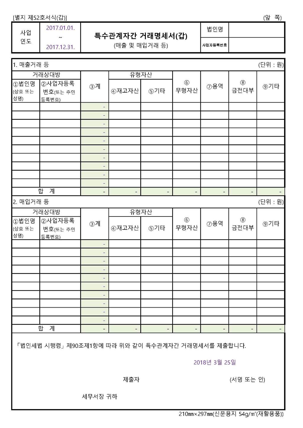 (별지 제52호서식) 특수관계자간 거래명세서 (갑) (을).xlsx