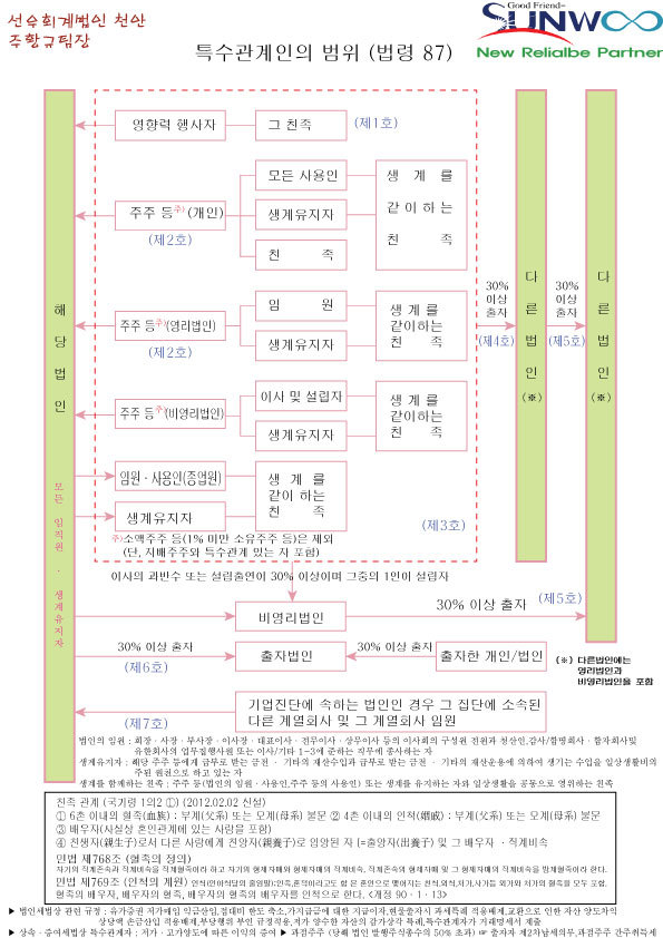 12. "특수관계인"이란 법인과 경제적 연관관계 또는 경영지배관계 등 대통령령 법령 제2조[정의]으로