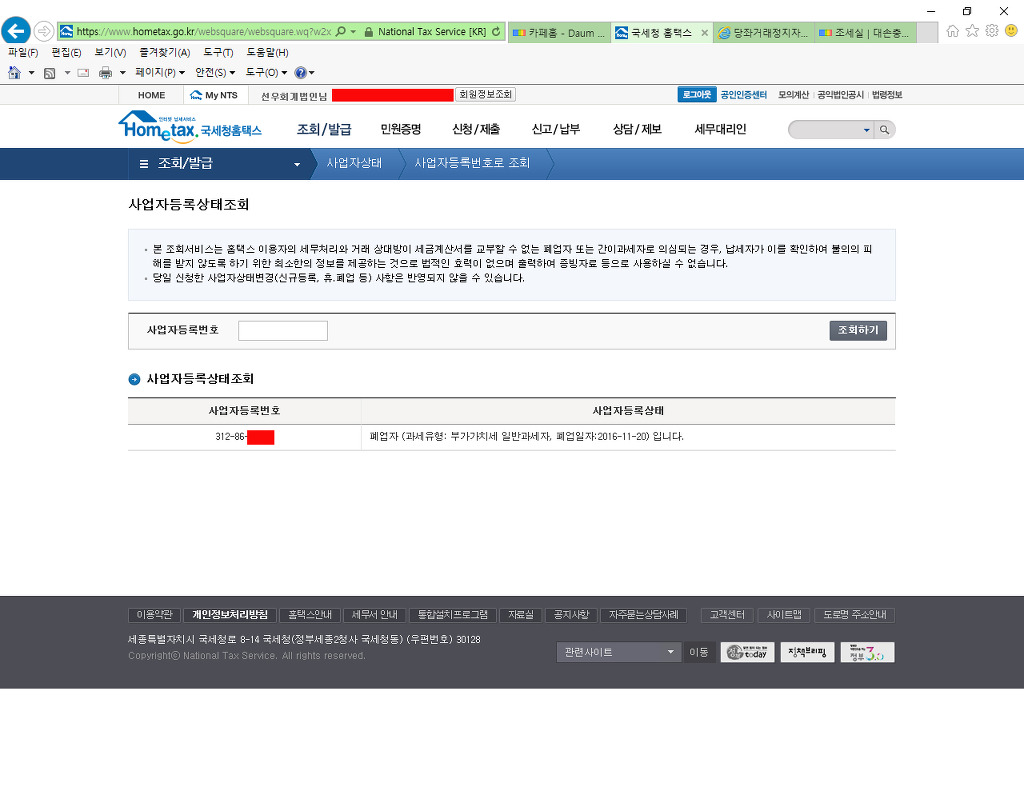 2016년 11월 20일 사업자 폐업을 하였습니다.