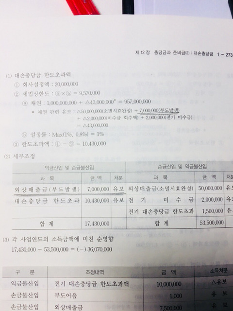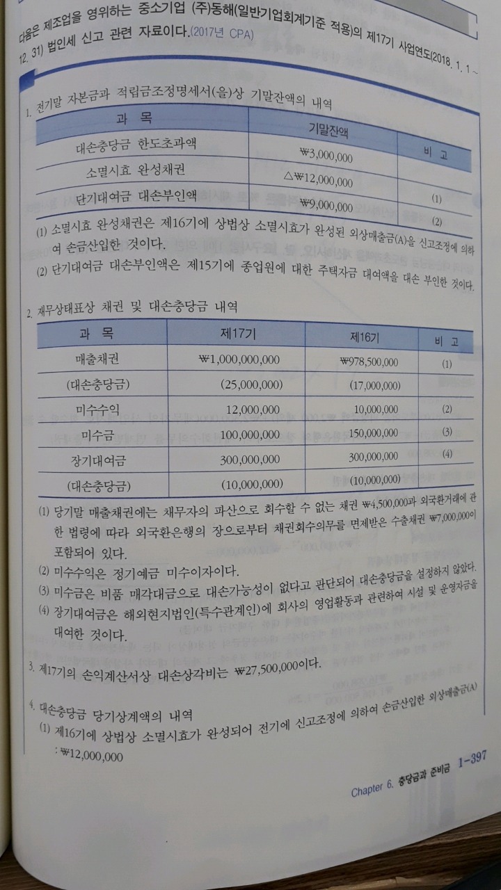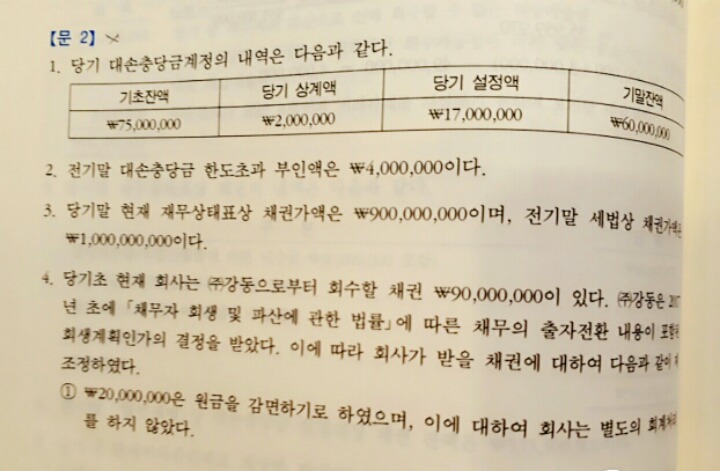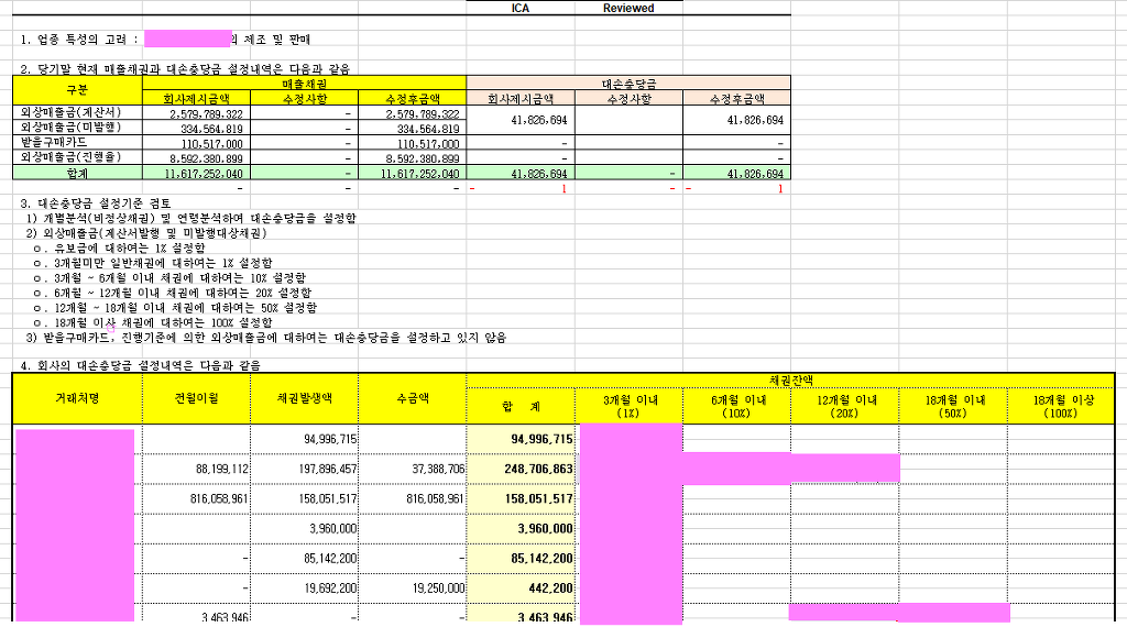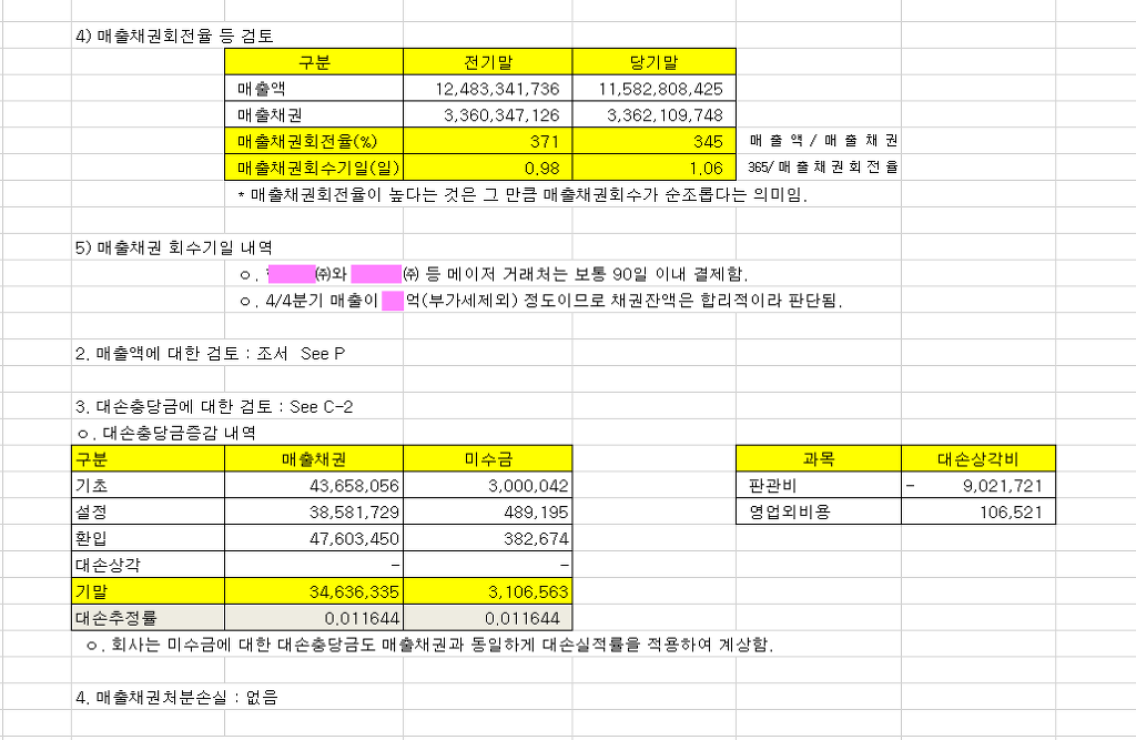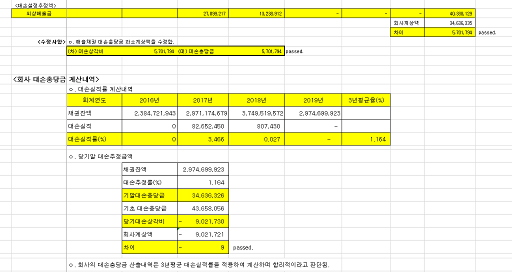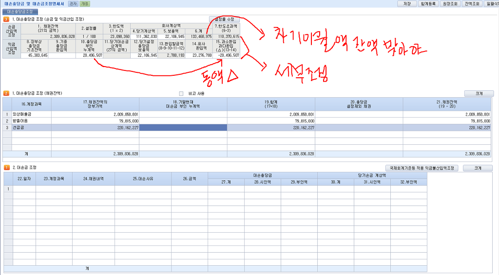 대손충당금 제대로 작성 되었는지 여부 2가지
