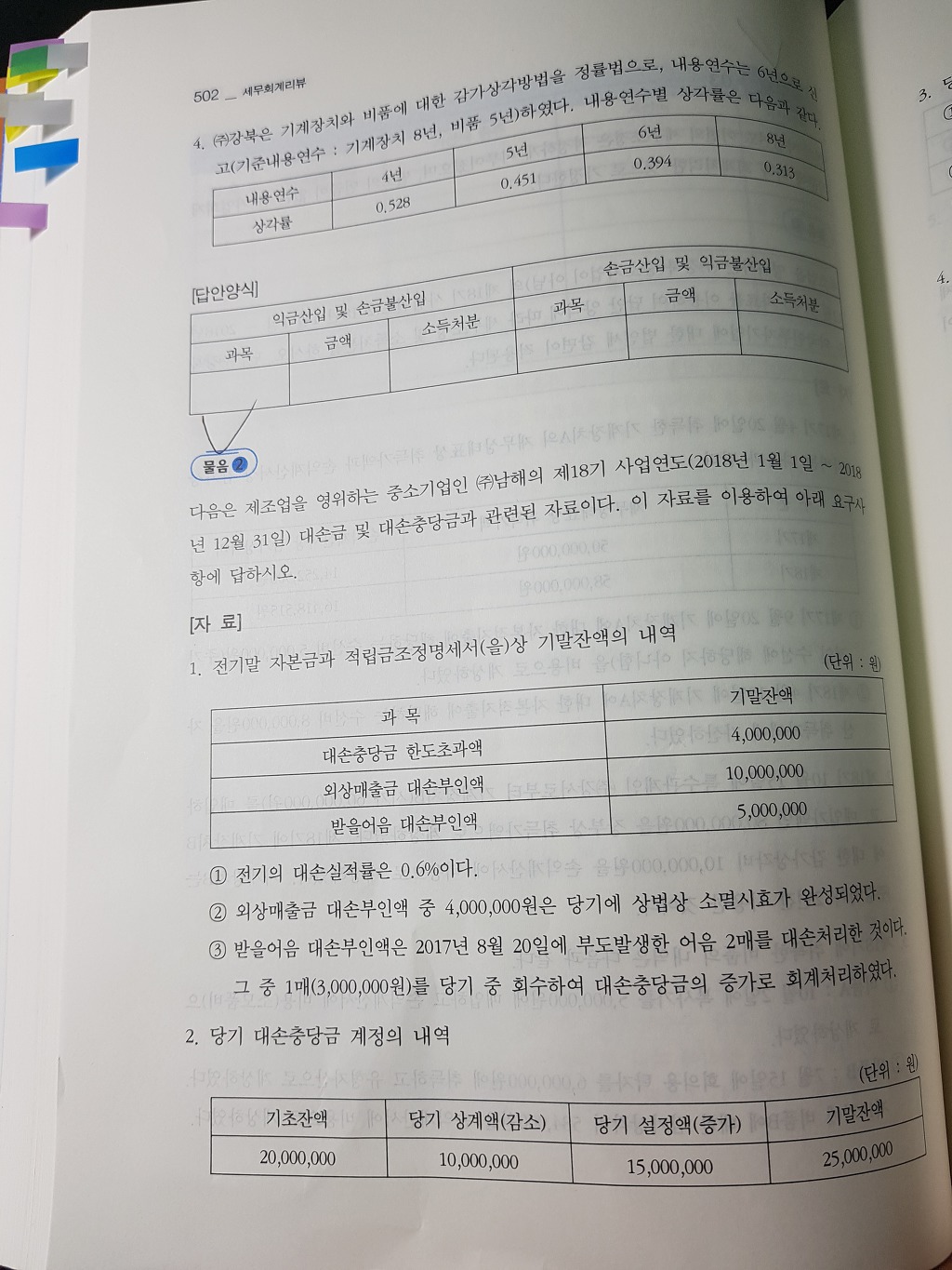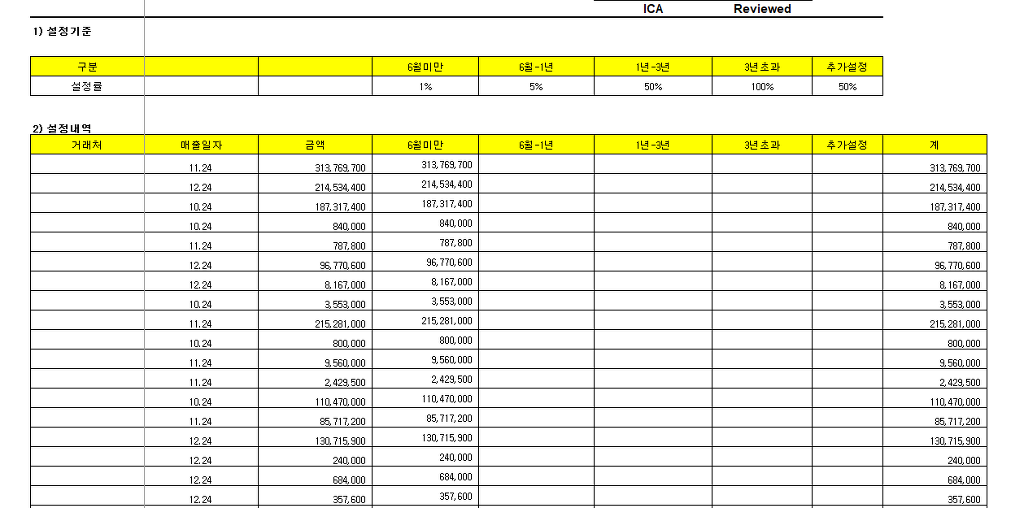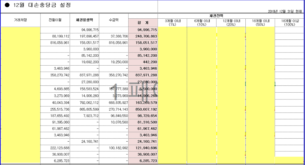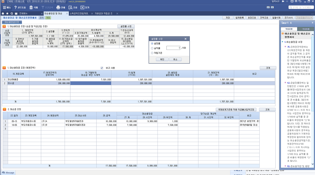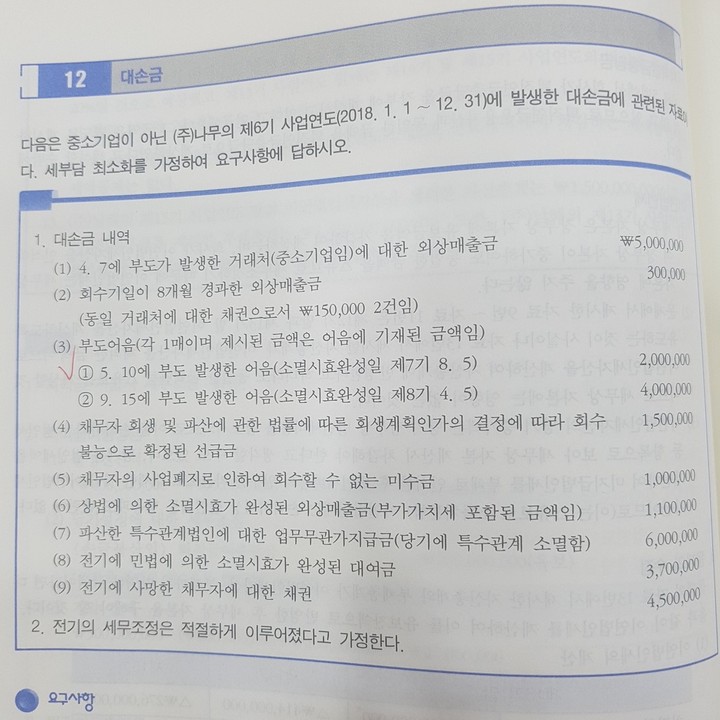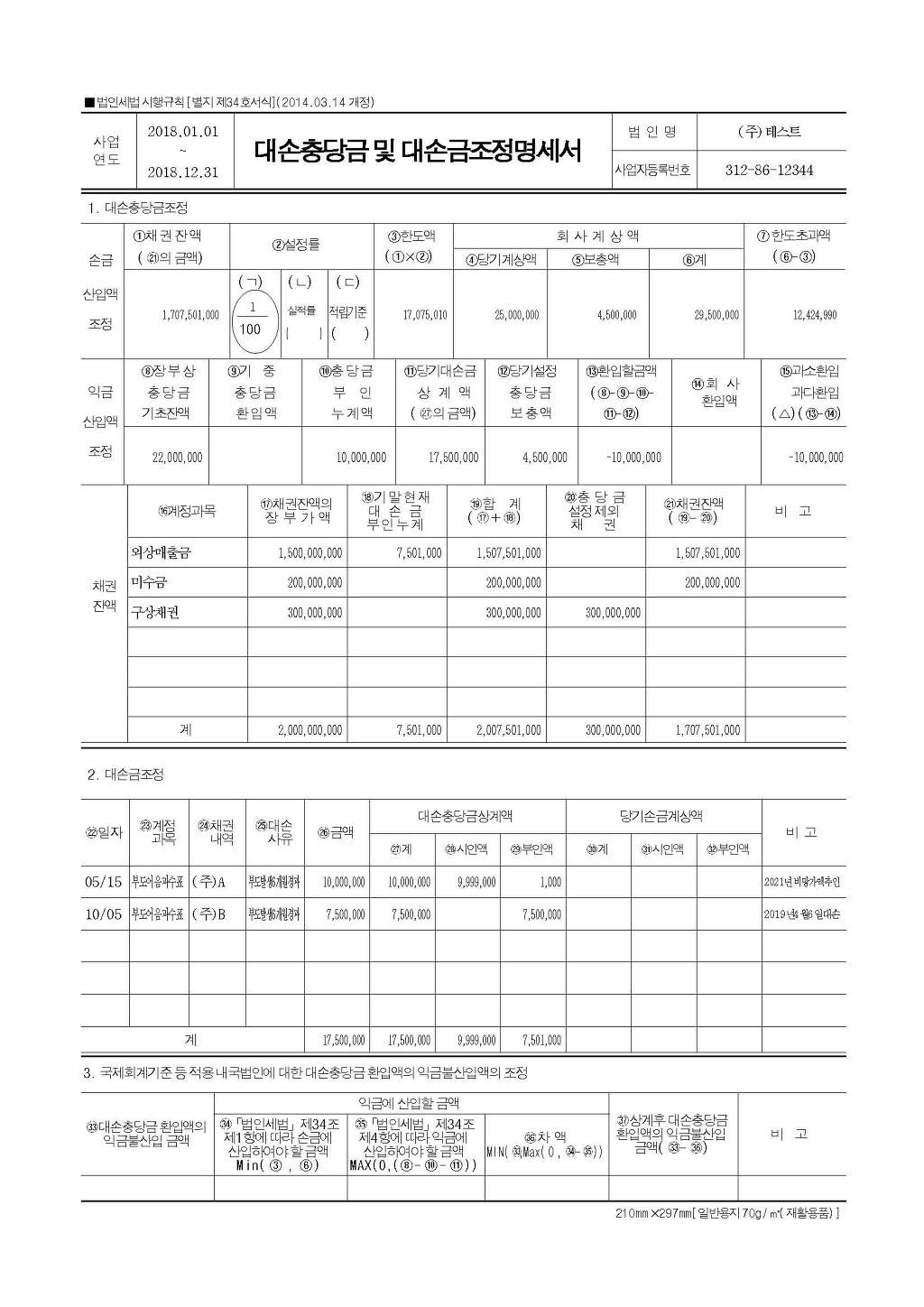 대손충당금 제대로 작성 되었는지 여부 2가지