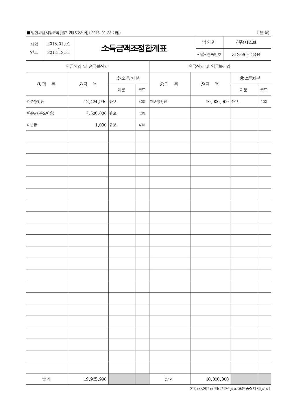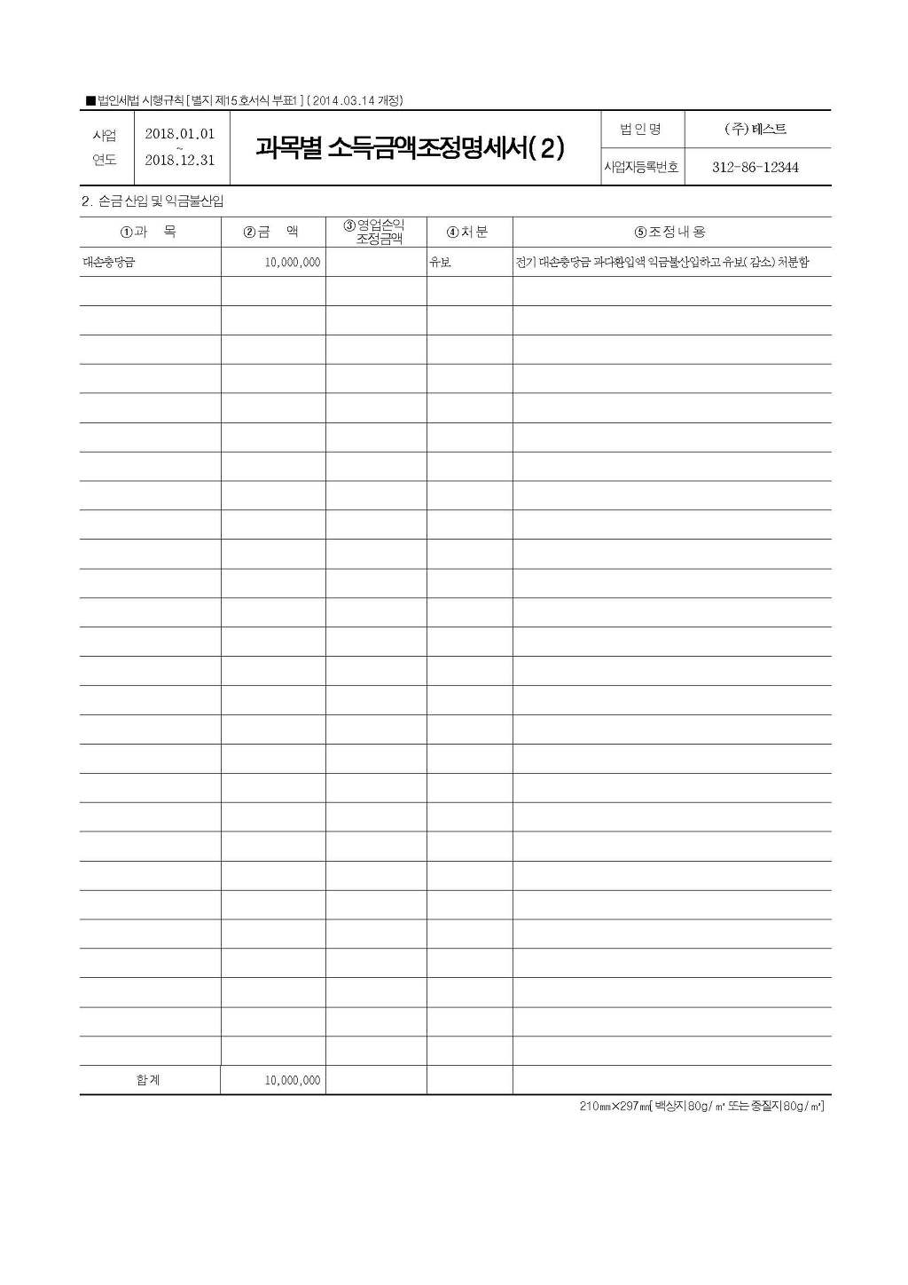 대손충당금 조정 세법상 총액 하단 대손충당금 및 대손금 조정명세서 서식의 익금산입액 조정이 총액법 서식으로