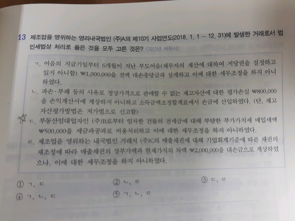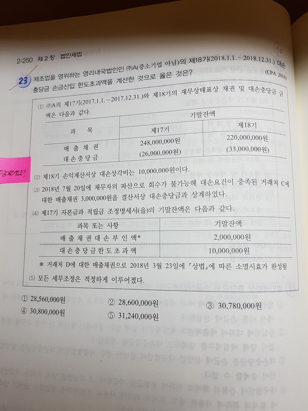 18. 기말현재 대손금 부인 누계액은 당해(직전연도가 아님)연도의 대손금(외상매출금등 제각 부인누계액)부인 누계액이 와야 한다.