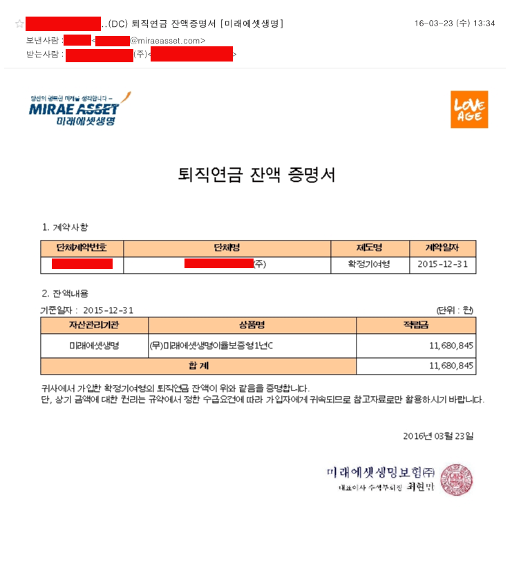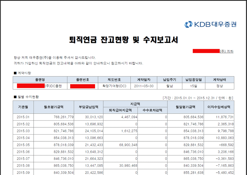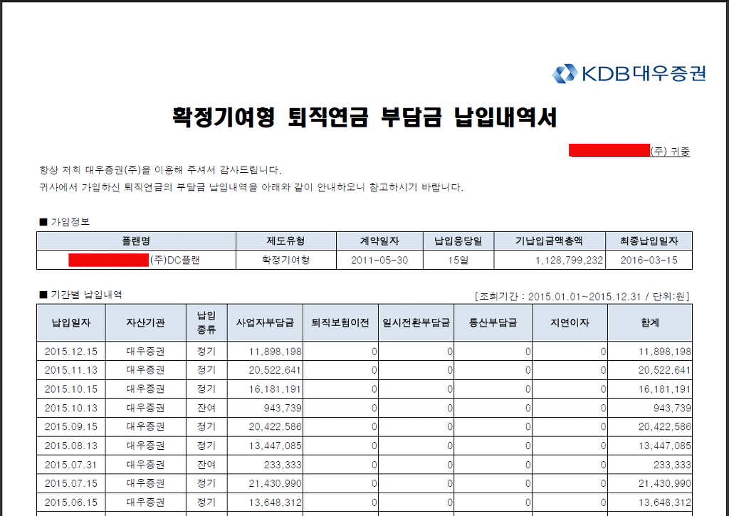 확정기여형 퇴직연금 부담금 납입내역서 / 퇴직연금 잔고현황 및 수지보고서 작성자주황규 팀장|작성시간16.03.28|조회수1,455 목록 댓글 0 글자크기 작게가 글자크기 크게가 다음검색 현재 게시글 추가 기능 열기 북마크 공유하기 신고 센터로 신고 댓글 댓글 0 댓글쓰기 답글쓰기 댓글 리스트