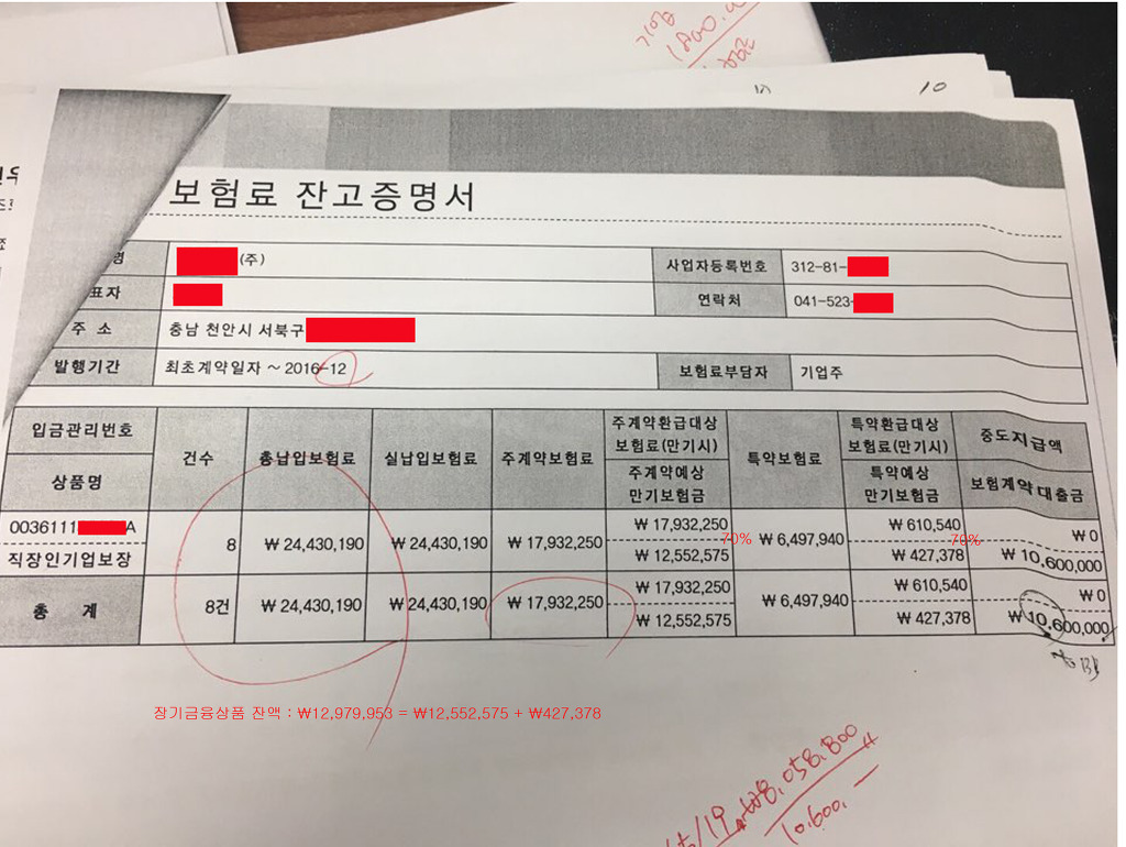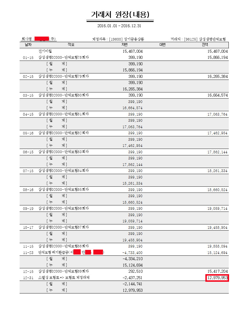 보험료잔고증명서 최초계약일자 ~ 2016-12
