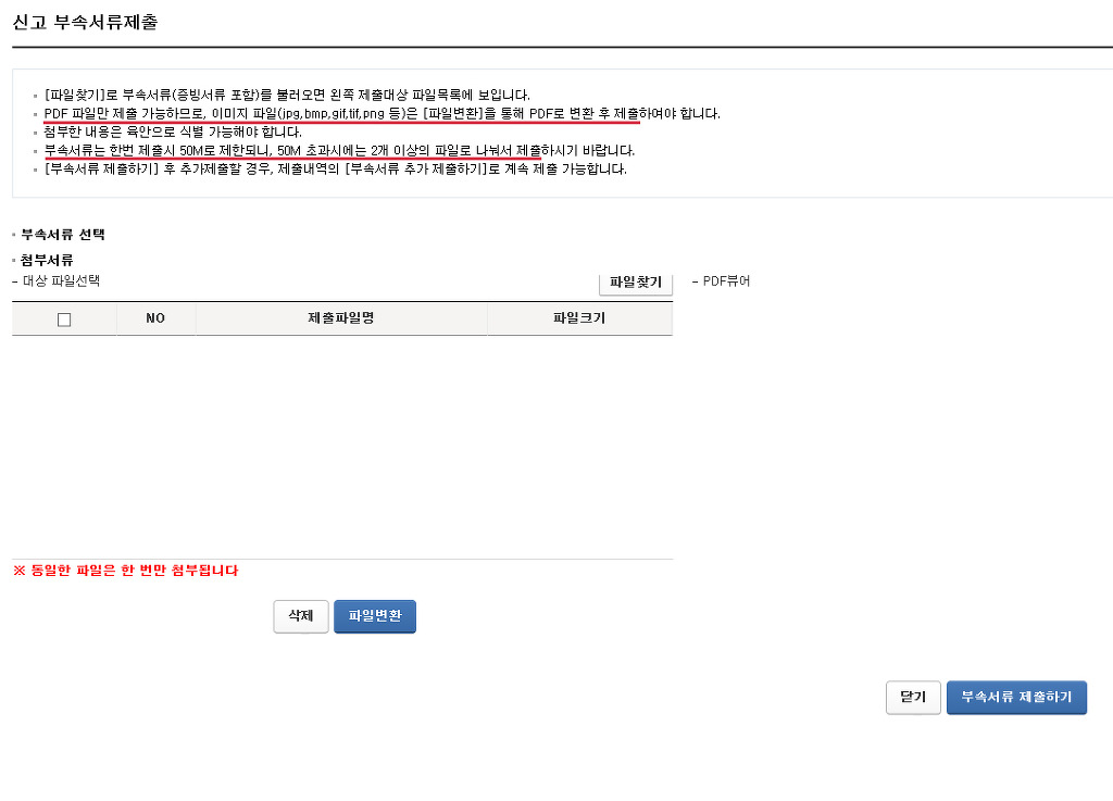 법인세 신고서 전자신고 정상 제출 후 , 결산서류 등 부속서류를 제출해야 하는 법인은 [부속서류 제출] 선택합니다.