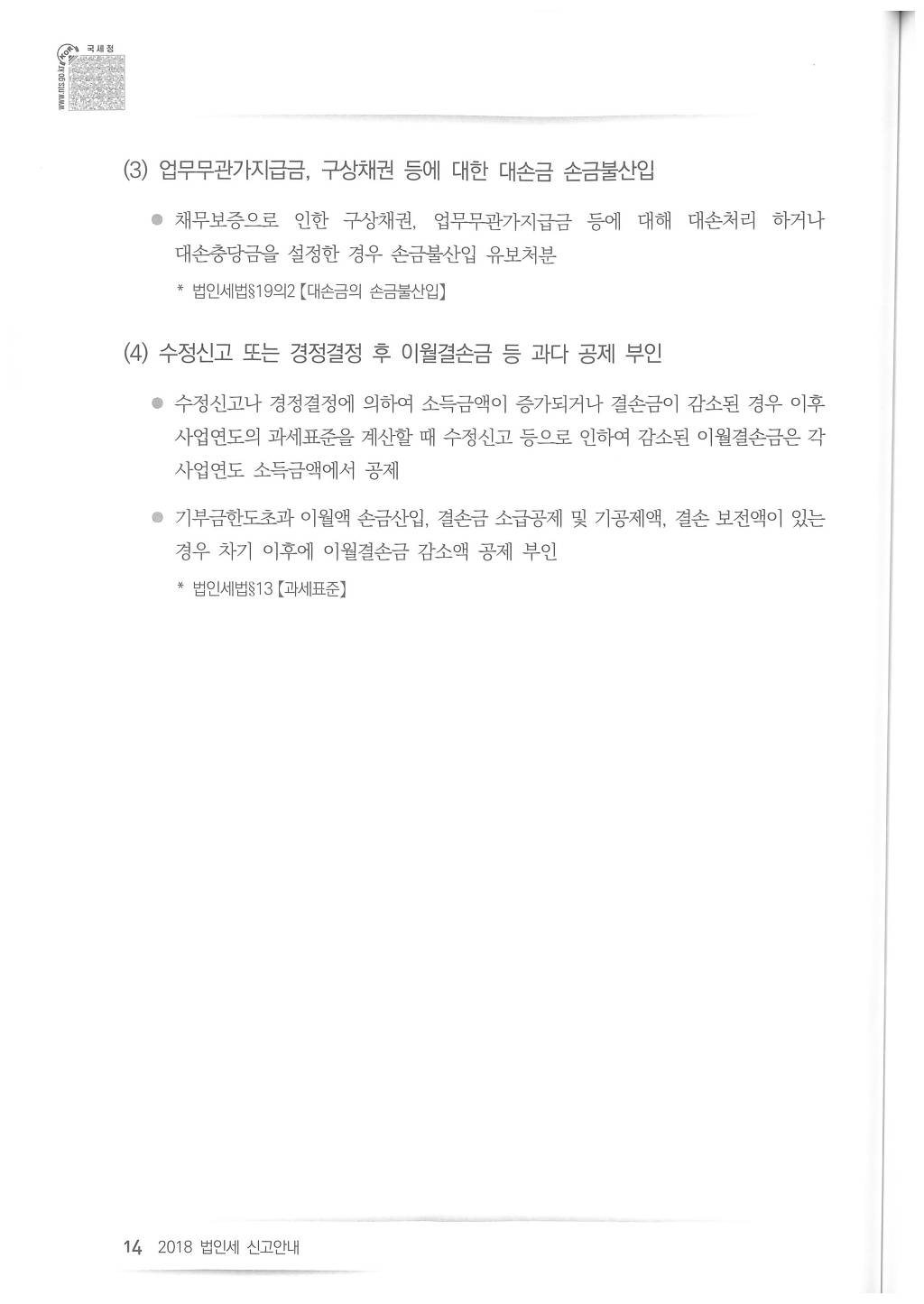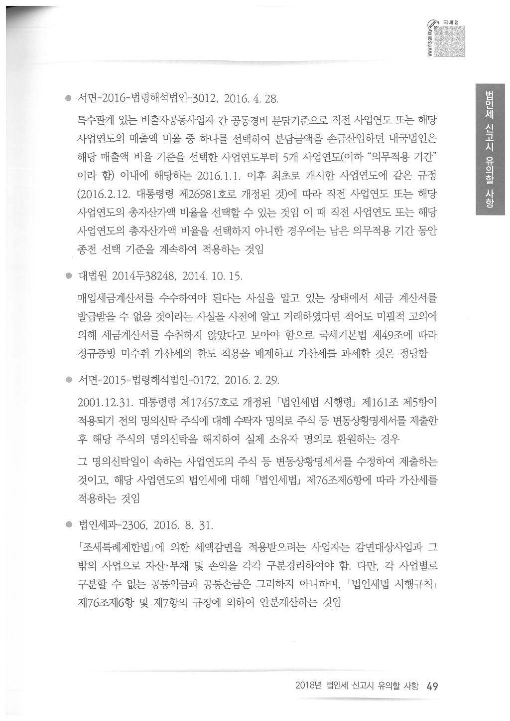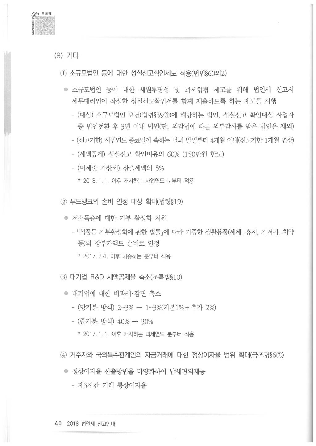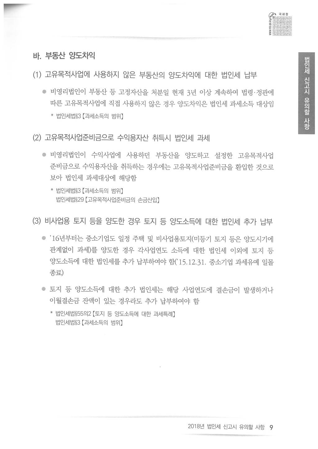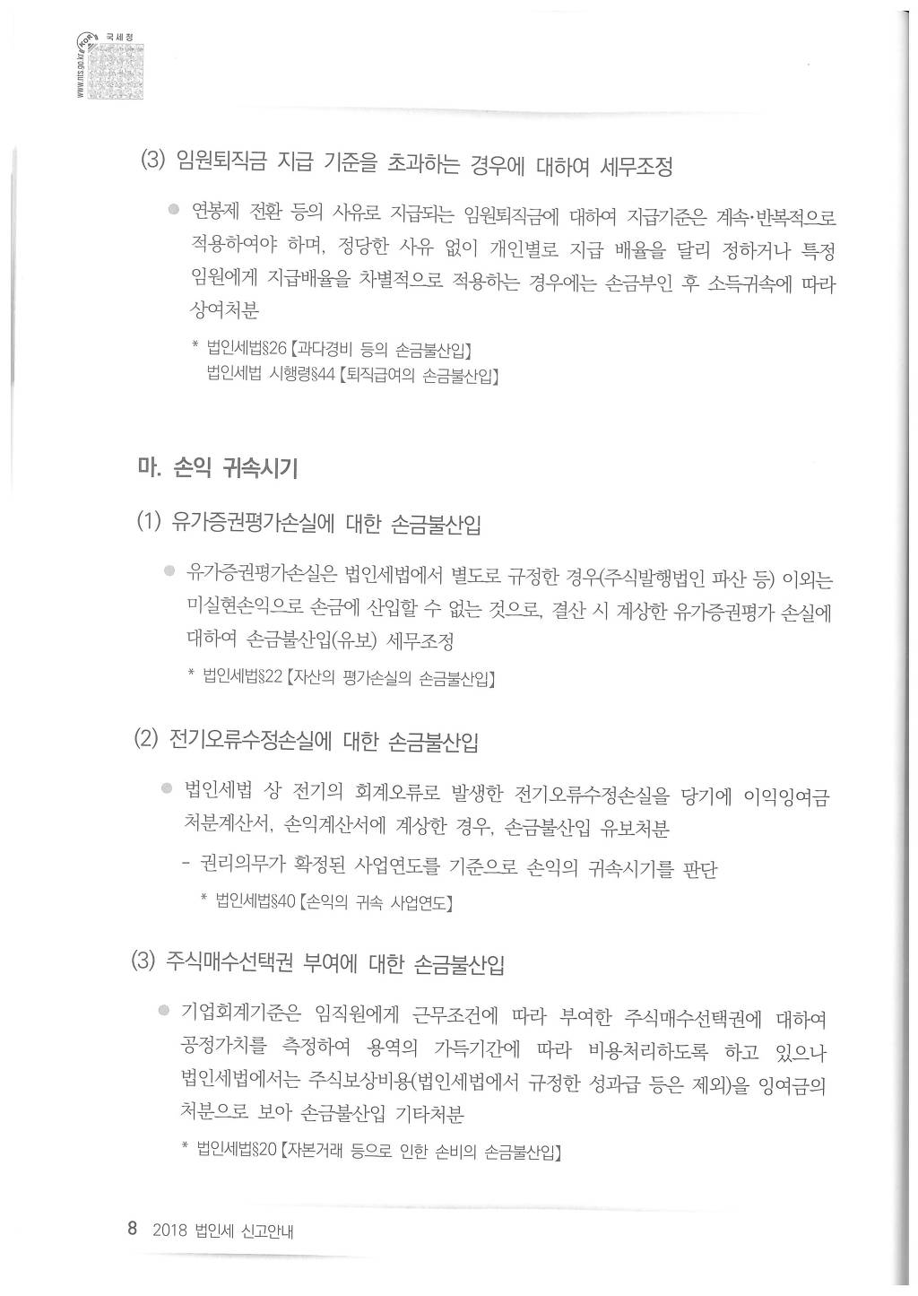 2018년도 법인세 신고시 유의사항 - 국세청