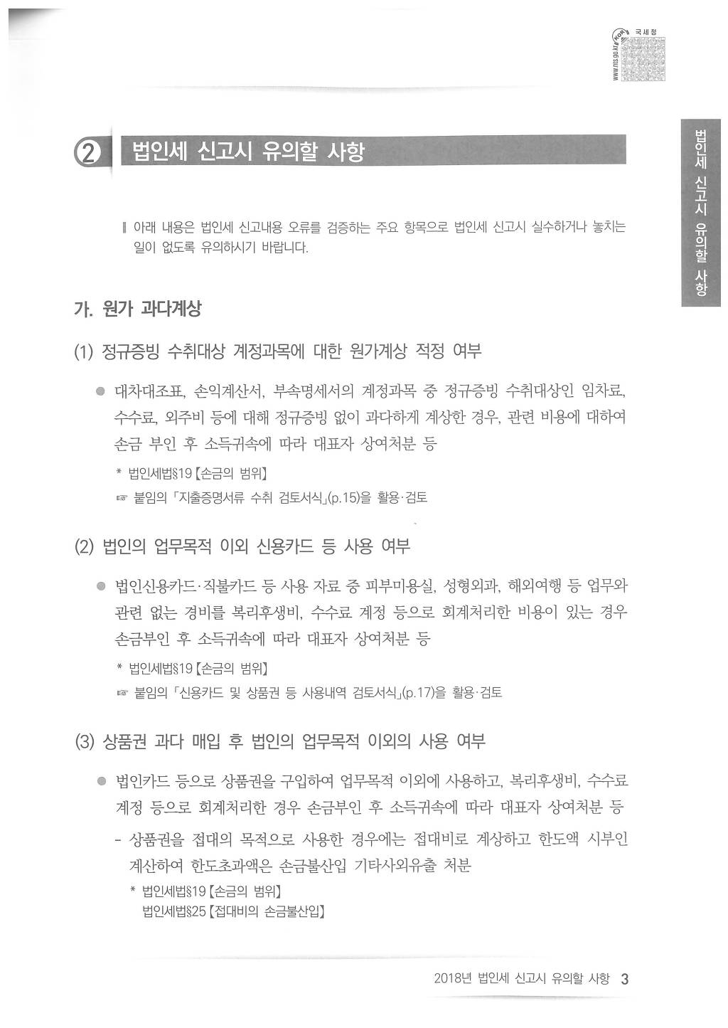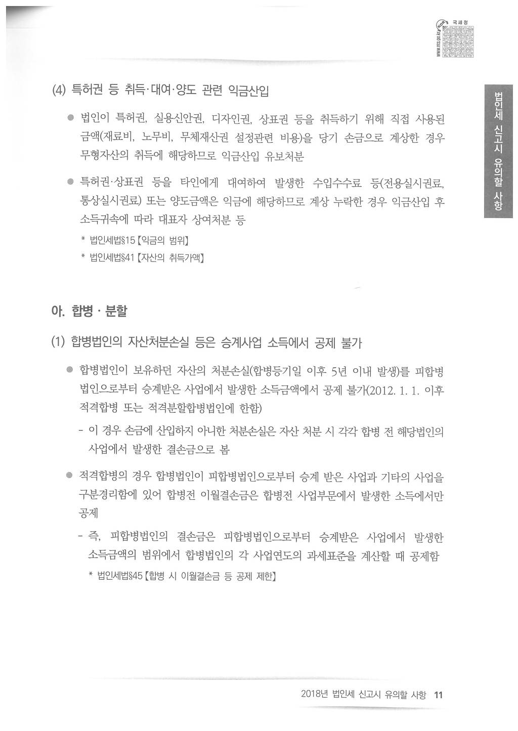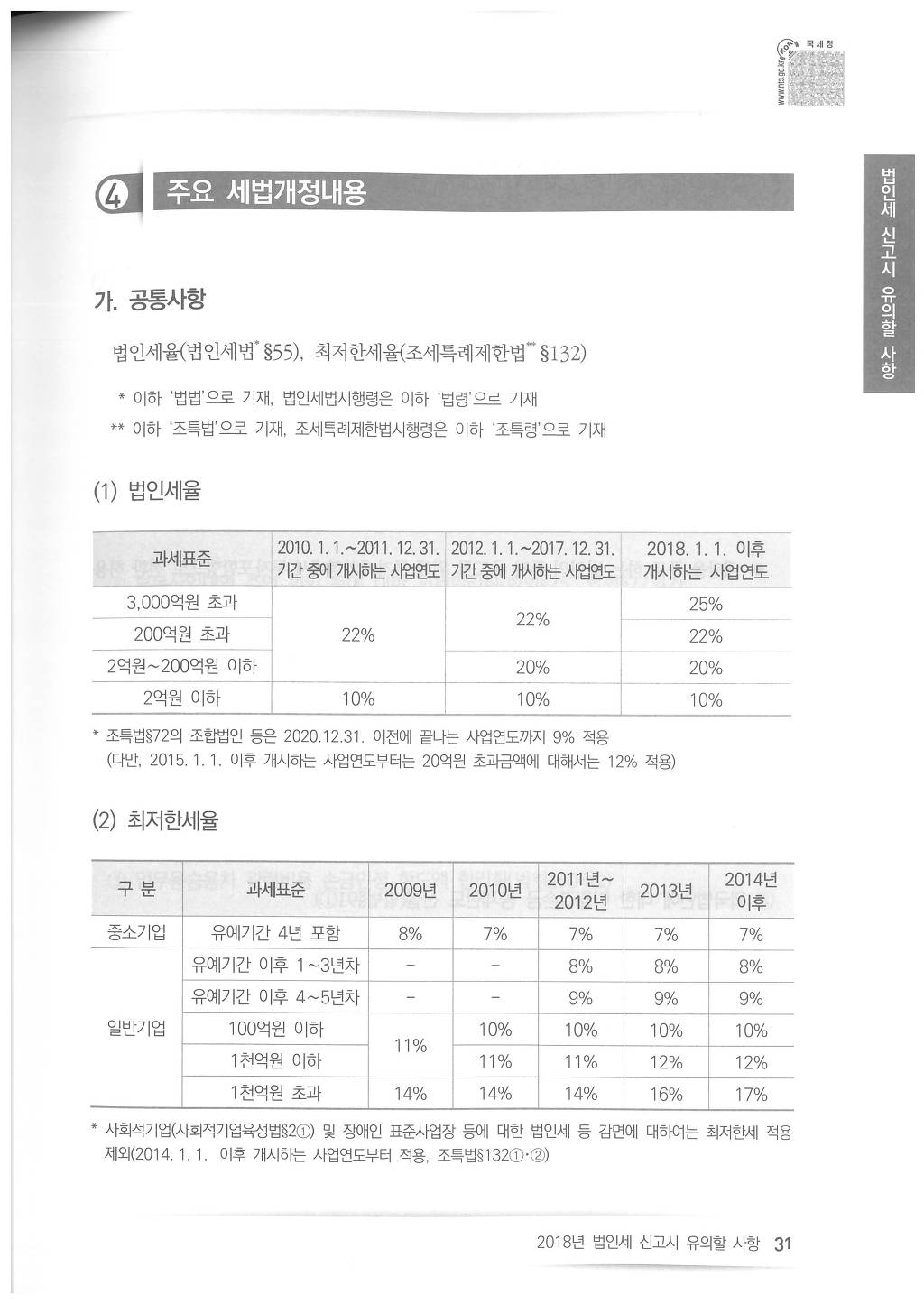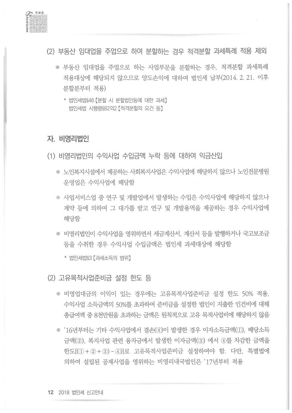 2018년도 법인세 신고시 유의사항 - 국세청