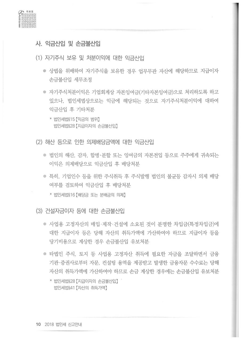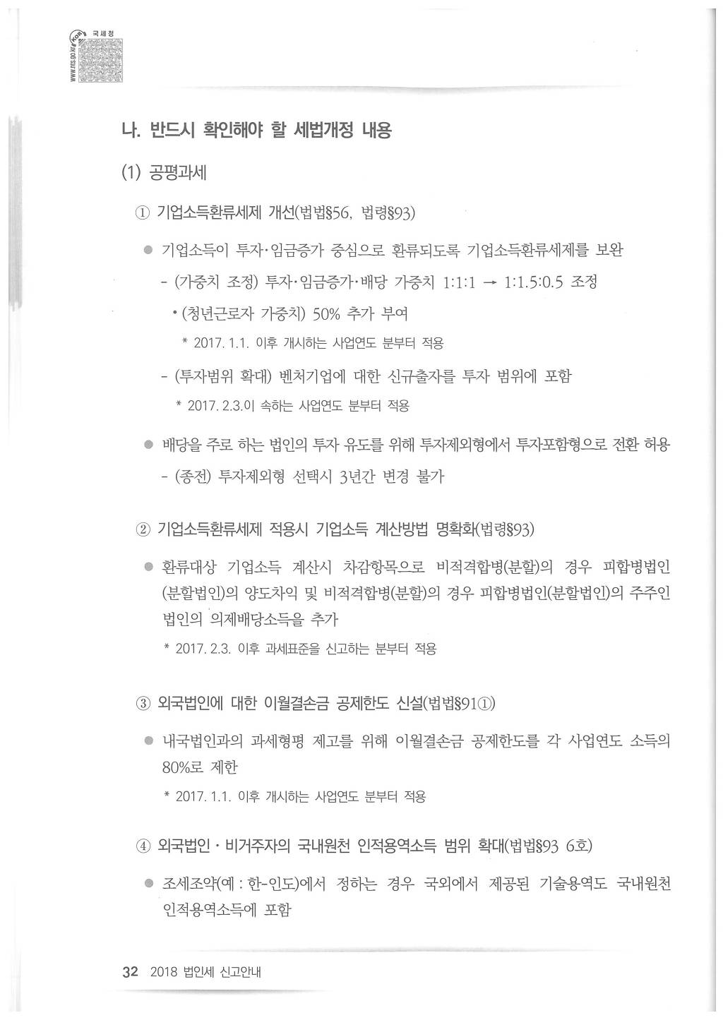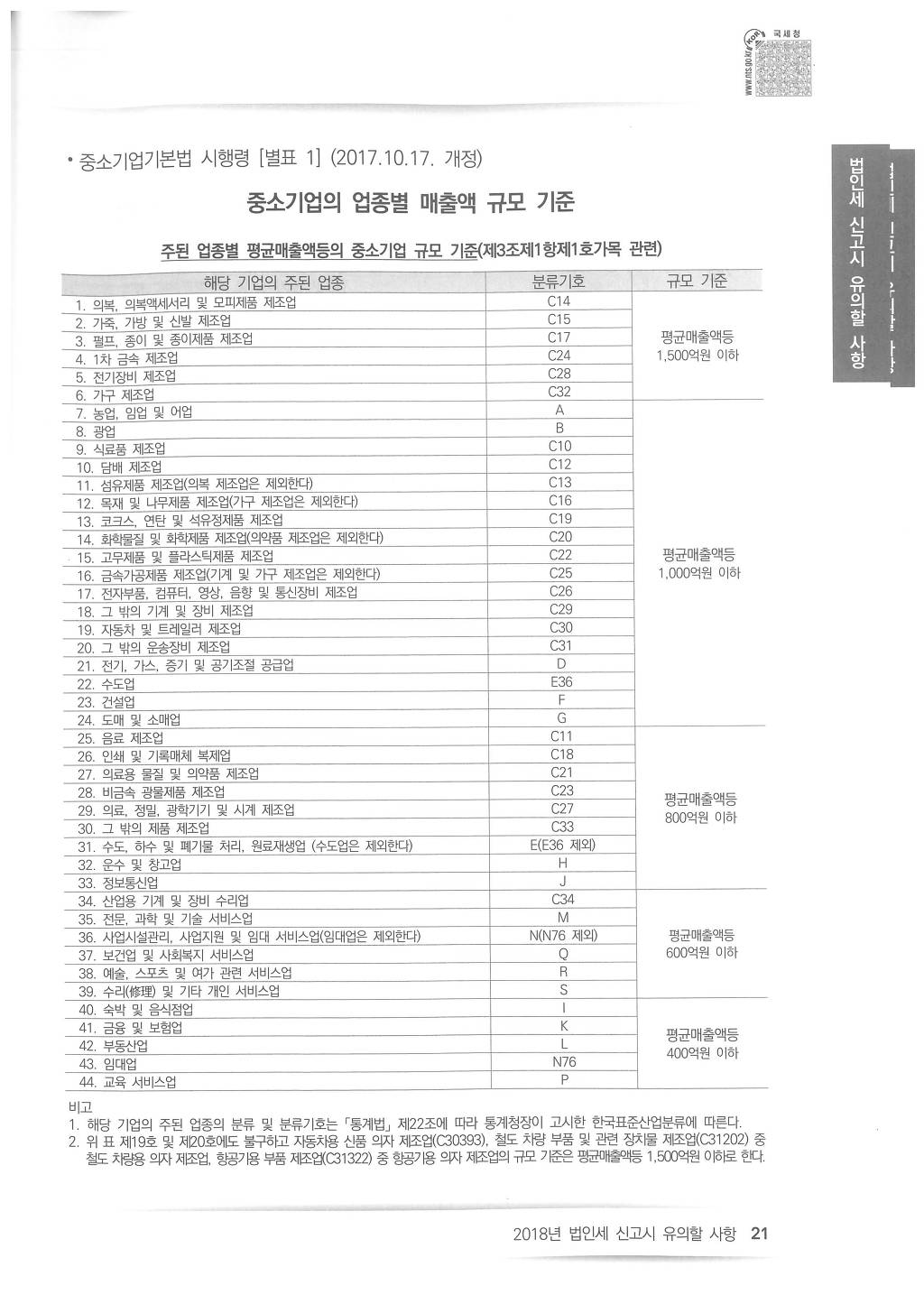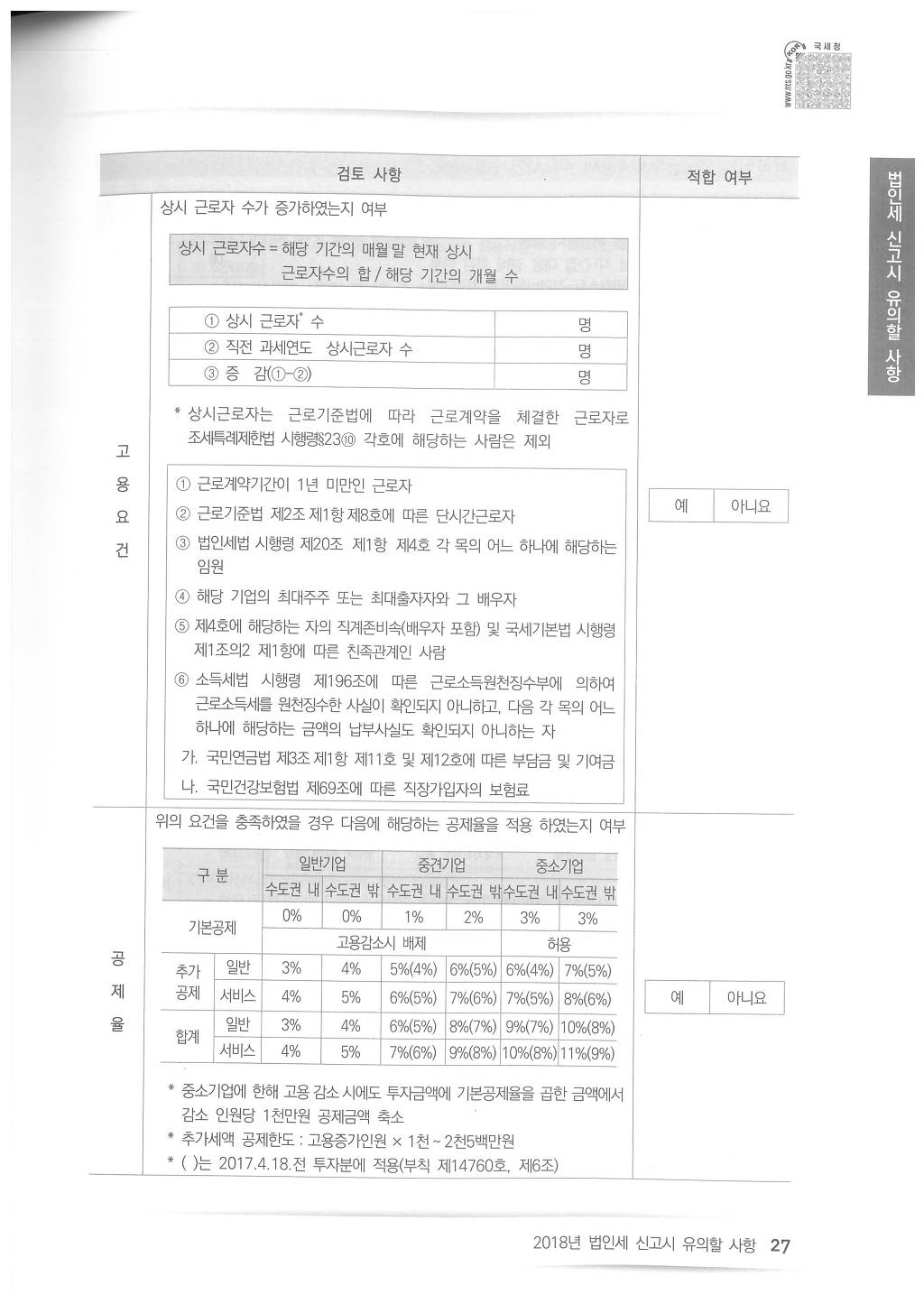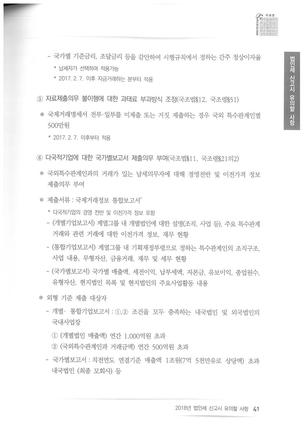 2018년도 법인세 신고시 유의사항 - 국세청