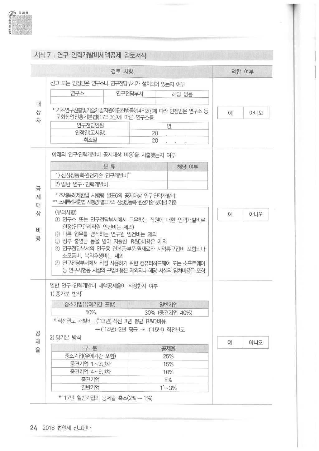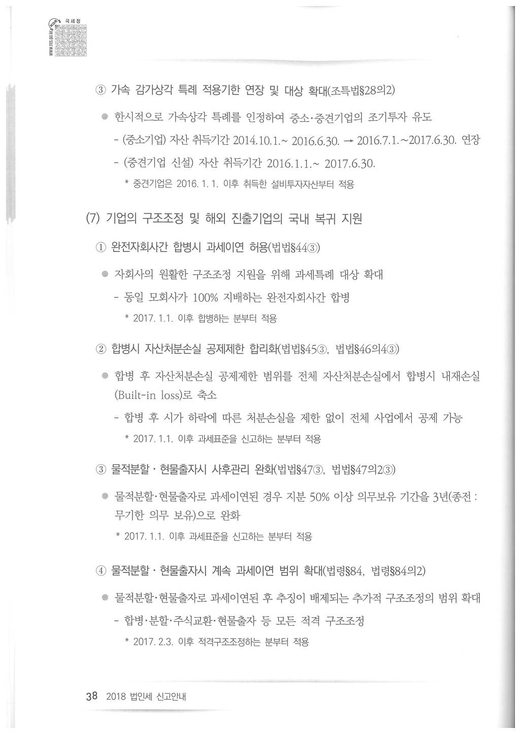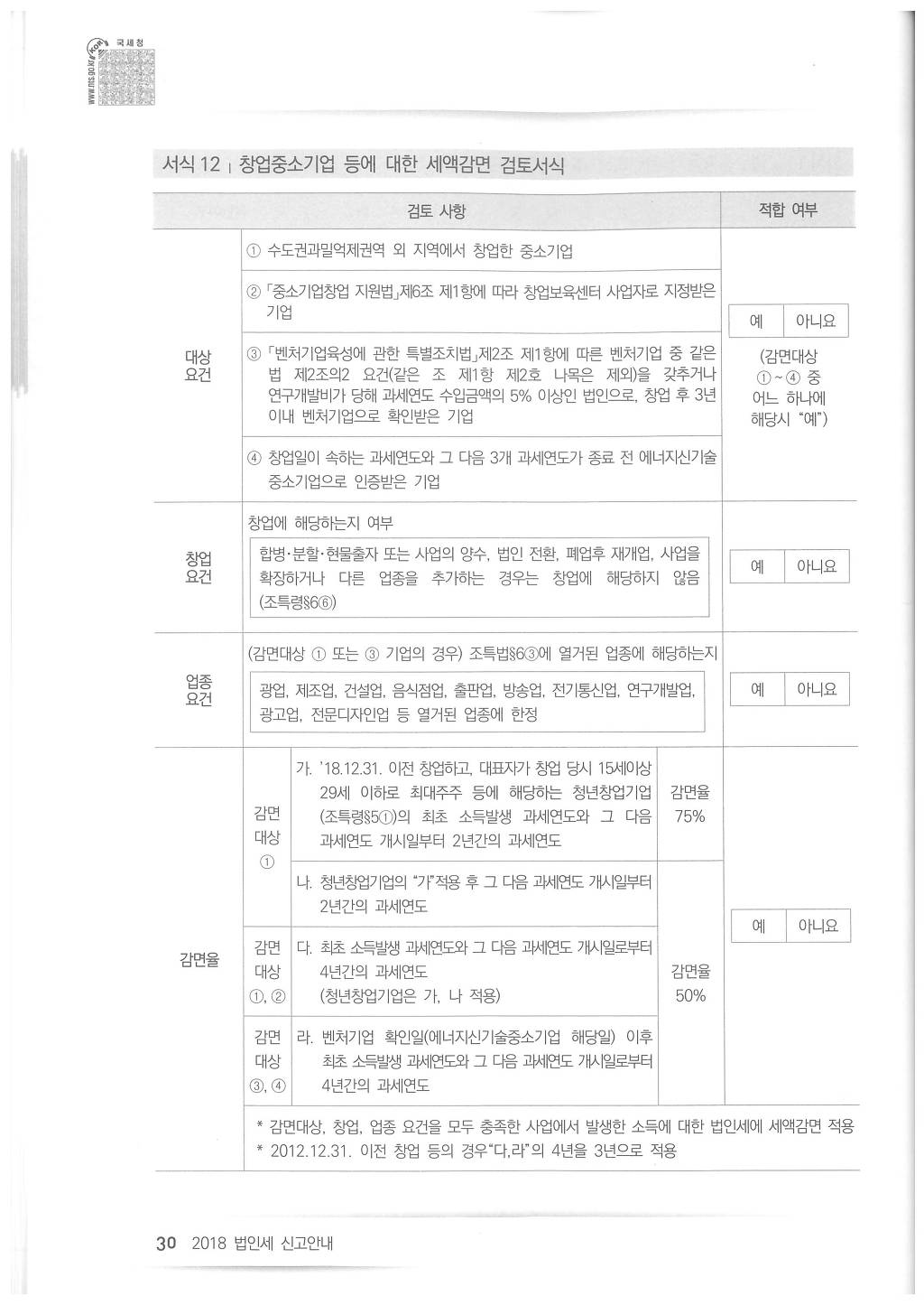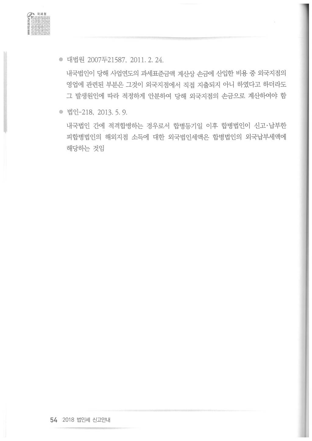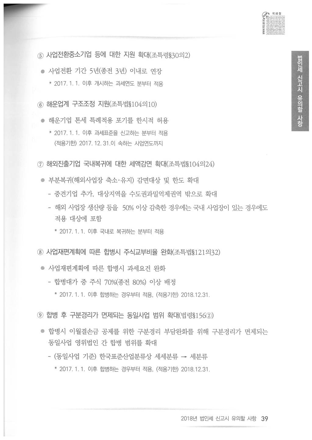 2018년도 법인세 신고시 유의사항 - 국세청