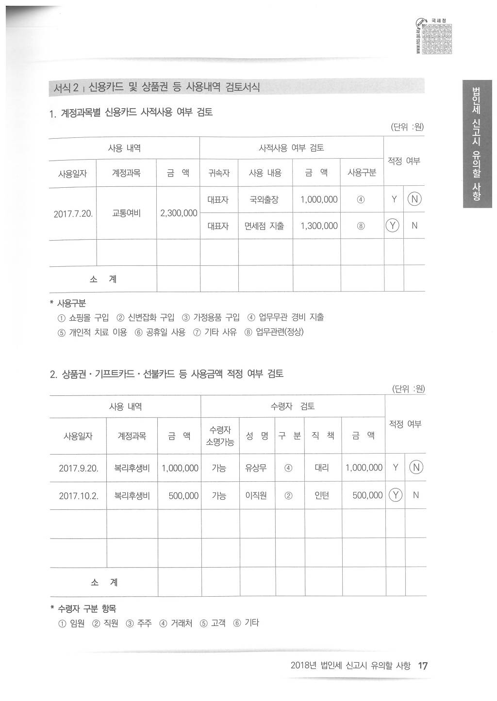 특정한 항목의 신용카드 사용금액이 있는 법인이 신고 시 유의할 사항