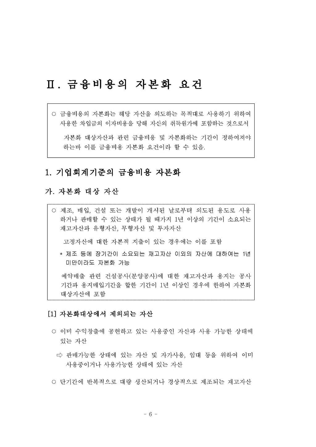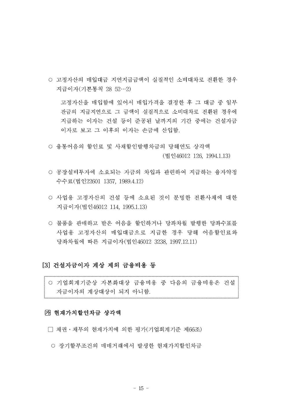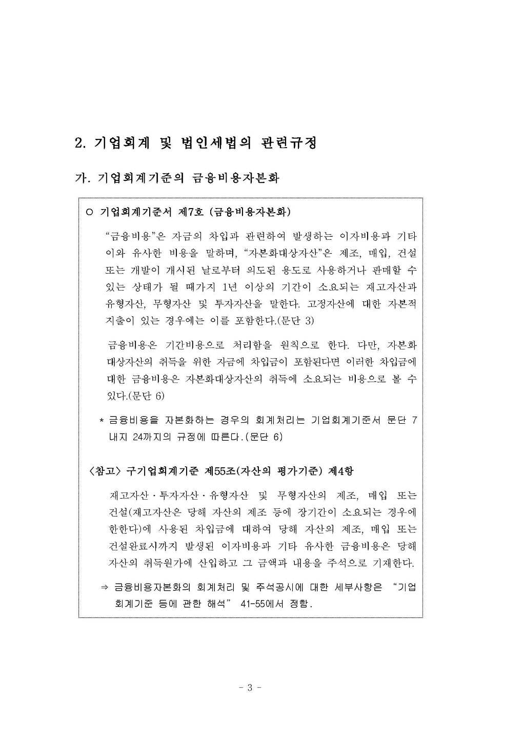 현행 기업회계상 건설자금이자를 정하고 있는 「일반기준」 제18장 및 K-IFRS 제1023호와 법인세법 규정을 비교하면 다음과 같다.