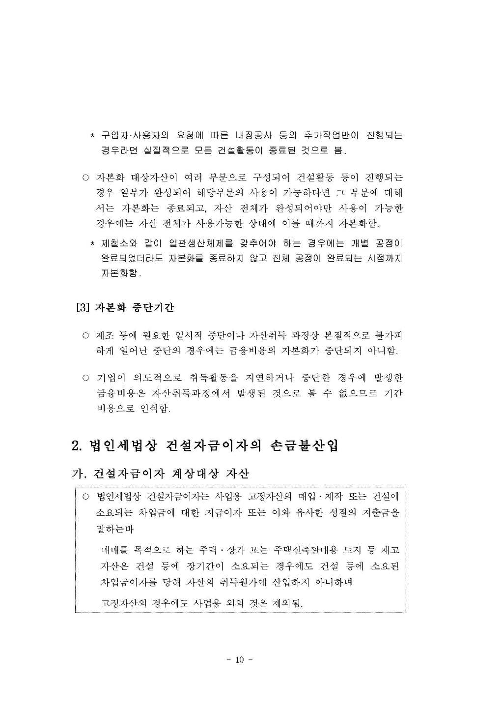 * 건설중단기간에는 자본화 중단. 다만 취득상의 불가피한 건설중단 등은 자본화 계속 | 사업용 고정자산의 건설 등을 개시한 날부터 건설 등의 목적물이 전부 준공된 날까지 계산